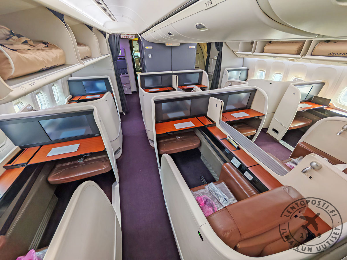 Matkustajien suosiossa ovat luonnollisesti ikkunapaikat, jotka tarjoavat näkymiä ulos kolmesta ikkunasta ja ovat sivussa käytävän tapahtumista. Keskiosan kolmesta business-istuimesta keskimmäinen paikka tarjoaa erinomaista yksityisyyttä ja rauhaa vaikka se ei olekaan matkustajien suosikki. Keskipaikalta on kuitenkin oma kulku koneen molemmille käytäville.