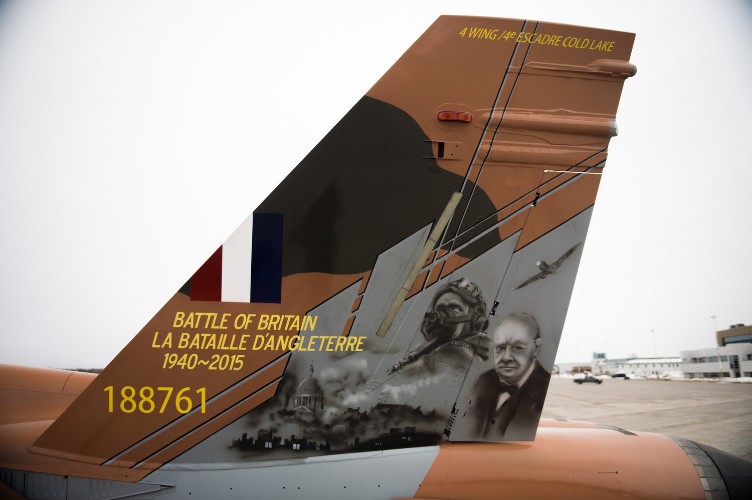 Royal Canadian Air Forcen McDonnell Douglas CF-18 Hornet -hävittäjä on maalattu yläpinnaltaan toisen maailmansodan värityskaavioon. Tällä kunnioitetaan Battle of Britainin 75-vuotisjuhlaa. Kyseinen koneyksilö vastaa RCAF:n näytösesiintymisistä kaudella 2015.