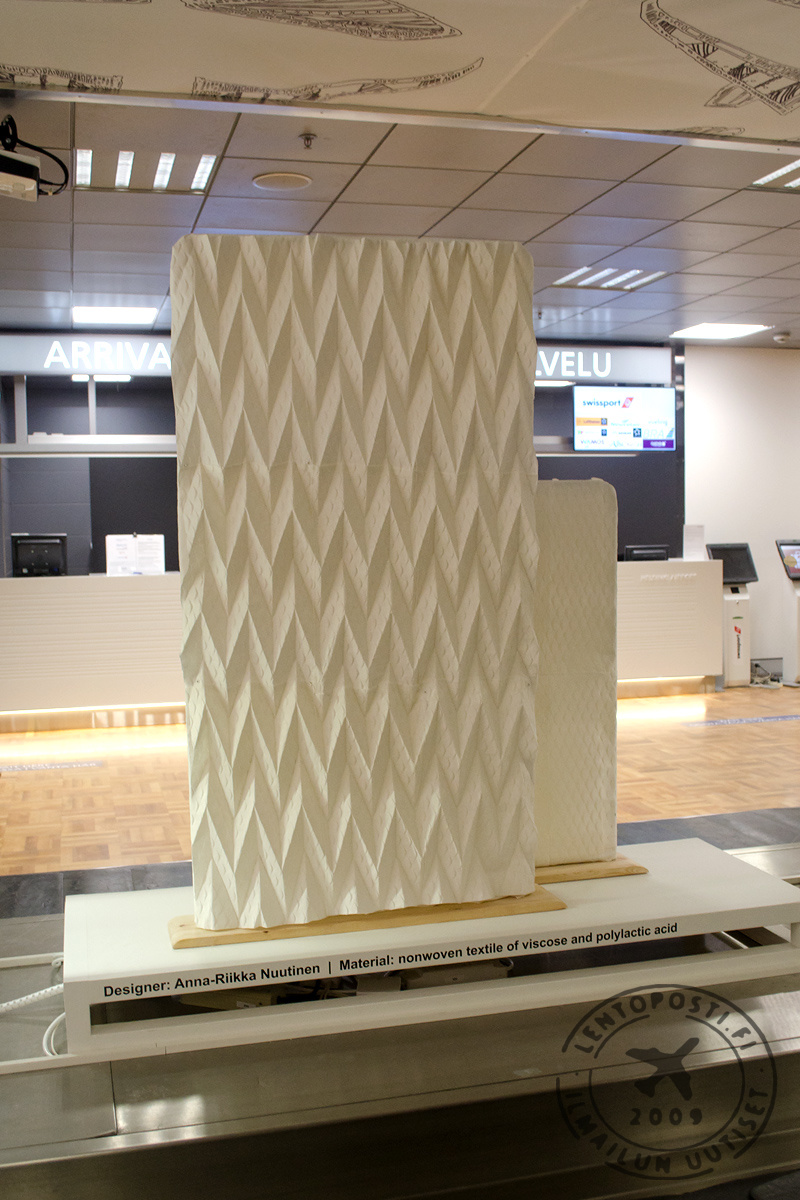 Näyttelyesineisiin käytettiin materiaalina uusiutuvia raaka-aineita. Mukana on mm, puupohjaista selluloosaa, ruokajätettä sekä höyheniä ja kasveja. Opiskelijat keräsivät materiaalit itse, jonka jälkeen niitä käsiteltiin ja jalostettiin erilaisiksi esineiksi ja aineiksi. Näyttelytyöt ovat kuitenkin vielä kokeiluja, eivät lopullisia tuotteita.