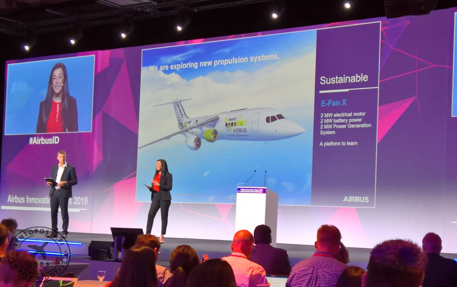 Airbus esitteli kestävän kehityksen ilmailun näkymiä Toulousen Innovation Days -tapahtumassa (kuva alla). SAS-yhteistyön lisäksi yhtiö esitteli käynnissä olevia ekologisen ilmailun hankkeita. Niistä yksi on E-Fan X -koelentokone.