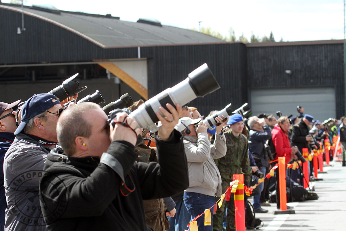 Konekuvajaat ikuistivat innokkaasti Ilmavoimien aiemmin varsin piilossa pitämää Fokkeria. Toki se on jo vuosia sitten päässyt tiedotusvälineidenkin julkaisemiin kuviin, mutta kovin moni vaikutti haluavan myös itse otetun ruudun koneesta. Kotimainen lentonäytöskausi jatkuu Sotilasilmailusta ammatti -tapahtumilla Tikkakosken Ilmasotakoulussa tiistaina 28. toukokuuta ja Rovaniemellä Lapin lennostossa torstaina 22. elokuuta. Niiden väliin sijoittuu kesän päätapahtuma eli Suomen Ilmailuliiton 100-vuotisjuhlalentonäytös Turussa 15.-16. kesäkuuta. T.T. MH, HK.