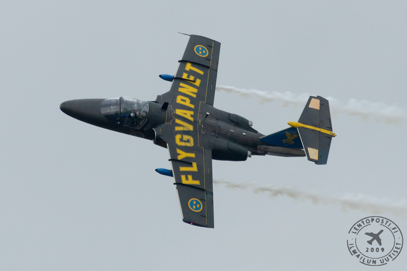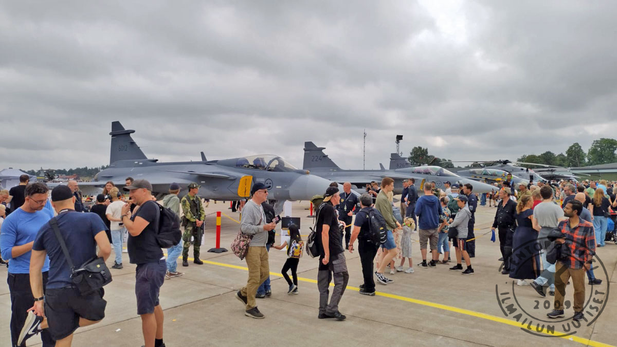 Ruotsin ilmavoimien kalustosta taivaalla nähtiin odotetusti uusi ensilinjan hävittäjä Saab 39E Gripen, joka oli mukana myös Suomen HX-hankkeessa. Muusta kalustosta lentonäytöksessä nähtiin mm. Saab 39C Gripen, Saab SK 60A -koulukone, Lockheed TP 84 Hercules- kuljetuskone sekä Sikorsky HKP 16A Black Hawk -helikopteri.