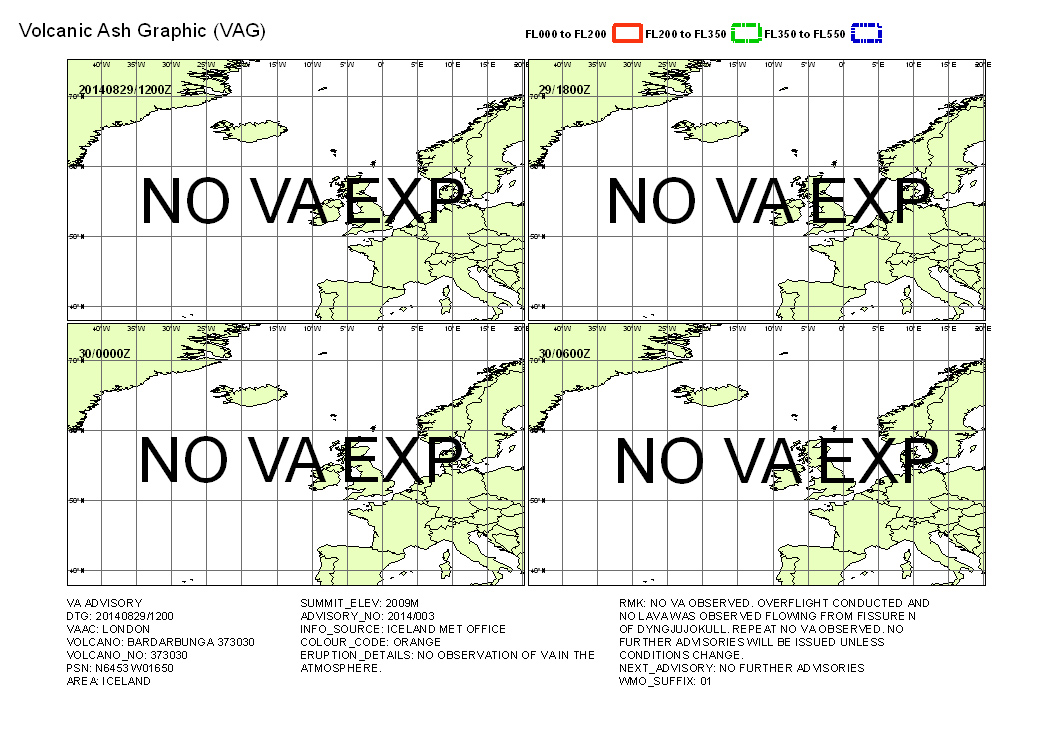 Islannin ilmailuviranomaiset ovat määrittäneet purkauspaikalle lentokieltoalueen, jonka halkaisija on 3 merimailia ja korkeusraja 5000 jalkaa. Lentokielto koskee mittarilentosäännöin operoivaa liikennettä.