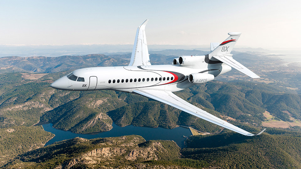 Kahden uuden lentokoneen 5X:n ja 8X:n kehitystyö laajentaa Falconin tuotevalikoiman kuuteen koneeseen. Näiden avulla voimme tarjota ratkaisuja eri operaattoreiden tarpeisiin", jatkaa Trappier. Falcon 8X:n lähestymisnopeus tyypillisellä laskupainolla on 106 solmua ja kiitotietarve on noin 1829 metriä. Ohjaamo on uudistettu 5X:n tavoin ja se on varustettu uuden sukupolven EASy-avioniikalla. Ohjaamon HUD-järjestelmä yhdistää synteettiseen kuvaan entistä enemmän tietoa.