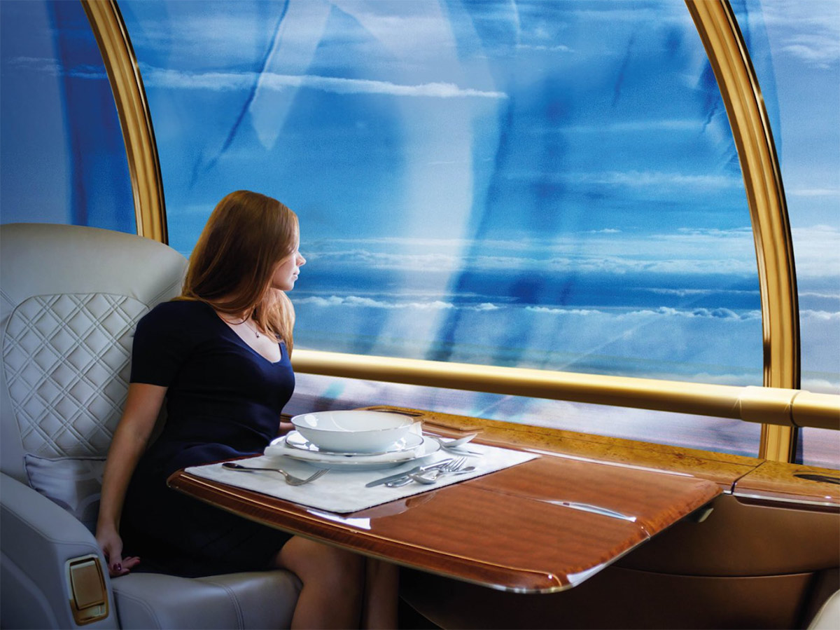 Emirates Airlines esitteli vuonna 2020 käyttöön otettaviin Boeing 777X -koneisiinsa uuden asennettavan Sky Loungen. Kyseessä on ekslusiivinen takarunkoon asennettava lasiseinäinen lounge. Se tarjoaa upeat ja lähes esteettömät näkymät lennolla ympäriinsä.