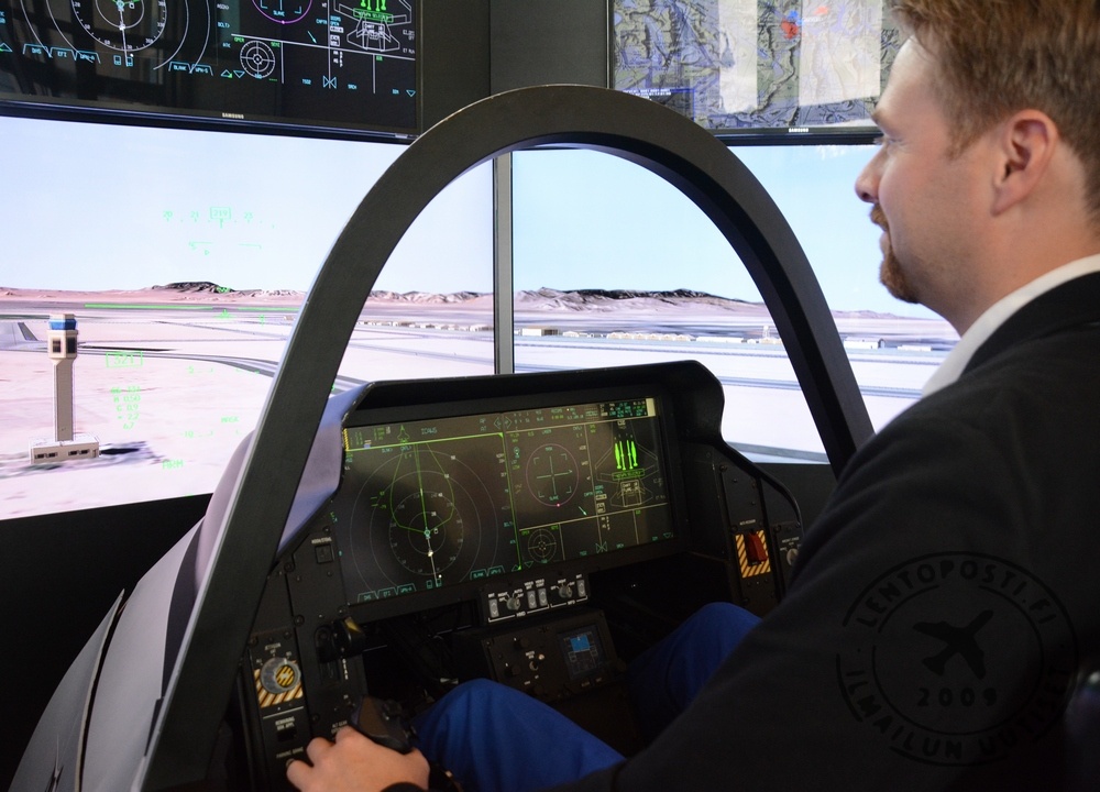 Läpilasku jatkui pystysuoralla nousulla mutta samalla taaksepäin lentäen. Kaikki sujui F-35:n Fly by Wire -tietokoneiden ohjaimien minimaalisella liikuttelulla. Kokeilimme myös matalalentoa Nellisin lentotukikohtaa esittävän maaston vuorten välissä. Koneen liikehtimiskyky vaikutti olevan esimerkiksi aiempaa Ilmavoimien F/A-18-simulaattorikokemusta vastaava. Modernien asejärjestelmien avustamana kumpikin ensikertalainen F-35-simulaattoriohjaaja kykeni opastettuna torjumaan vastapuolen hävittäjäkoneita niin AMRAAM-tutkaohjuksella kuin tykillä sekä osumaan maakohteeseen ilman vastustajan ilmapuolustuksen häirintää. Viides sukupolvi Joint Strike Fighter -kilpailutuksen voittanut Lockheed Martin F-35 Lightning II on viidennen sukupolven monitoimihävittäjä, jossa on pyritty yhdistämään stealth-koneen pieni tutkaheijastus nopeaan ja liikehtimiskykyiseen taistelukoneeseen.
