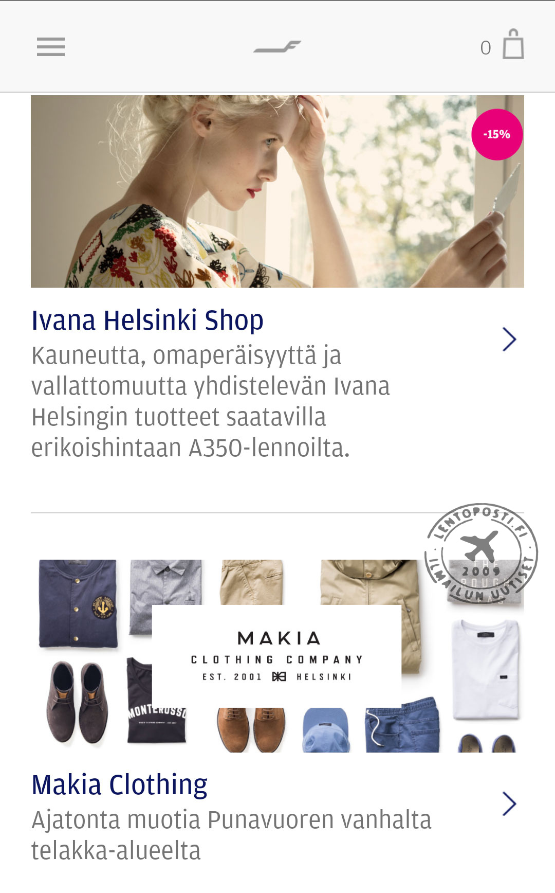 "On hienoa saada puputennarit ja muut kenkäni taivaalle myyntiin. Matkustan itse paljon, ja mielestäni ostosmahdollisuudet ovat erinomainen lisä lennolle. Matkustaminen ja ostokset kuuluvat yhteen, ja uusien kenkien hankkiminen on loistava tapa aloittaa matka", sanoo Minna Parikka. Kaikki Finnairin A350-900 -lentojen matkustajat voivat käyttää Nordic Sky -wifi-portaalia omilla laitteillaan ilmaiseksi molemmissa matkustusluokissa. Portaalista on pääsy finnair.comiin, uutispalveluun ja Finnairin muihin palveluihin, kuten kohdetietoihin, asiakaspalveluun ja pre order -tilausten tekemiseen, sekä ostospalveluihin. Matkustajat voivat myös tilata taksin Cabforce Taxi Servicen kautta sekä varata erilaisia kohdepalveluita, kuten konserttilippuja ja illallisristeilyjä, Viator Destination Service -palvelun avulla. Nordic Sky wifi-portaali ja internet-yhteys on Finnairin kaikissa A350-koneissa. Finnairilla on tällä hetkellä Helsingin ja Aasian kohteiden välisessä liikenteessä viisi A350-konetta. Lue myös:
