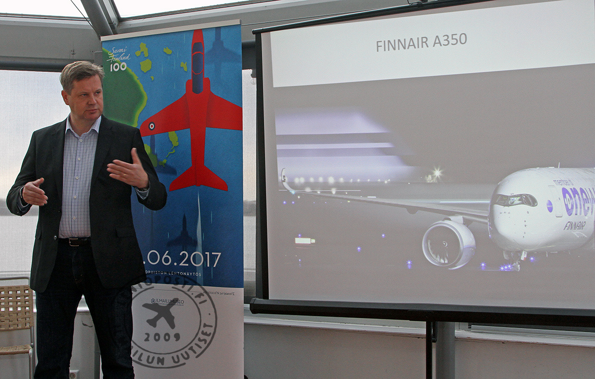 Finnairin A350-900 -koneen näytösesityksen lentää yhtiön Airbus-ryhmän päällikkö Chief Pilot Marko Valtonen. Hän lensi ensi kerran Finnairin kaukoliikennelaivaston nykyisen rungon muodostavia A350 XWB -koneita elokuussa 2015. Tuolloinen lento lennettiin Airbusin koelentokoneella.