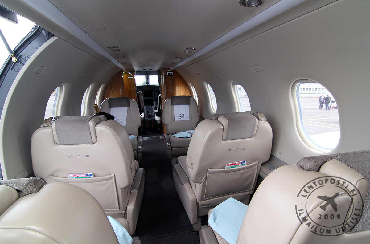 Y Pilatus PC-12NG -koneessa on kahdeksanpaikkainen matkustamo, joka tarjoaa sopivat tilat lyhyille lennoille. Koneen takaosassa oleva rahtiovi mahdollistaa periaatteessa myös liikuntarajoitteisten matkustajien kuljettamisen.
