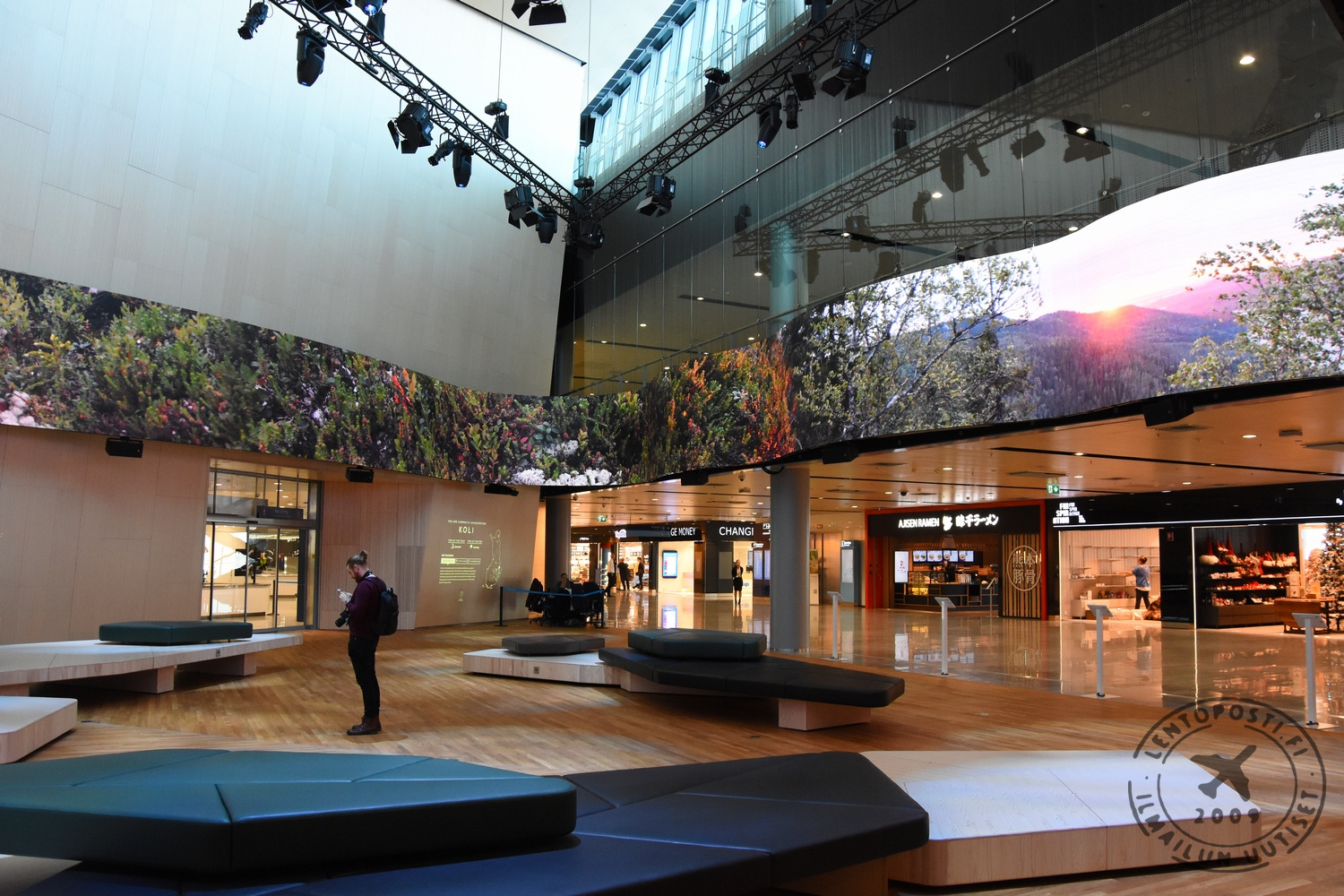 Aukio_terminaali_0219_10Helsinki-Vantaalla avattiin perjantaina 8. helmikuuta uusi laajennusosa, Aukio. Se esittelee  arkkitehtuuriltaan, muotoilultaan ja tunnelmaltaan suomalaista osaamista. Kotimaisia maisemia esitellään 75 metriseltä tilaa kiertävältä LED-näytöltä. Finavia odottaa sen tarjoavan lentomatkustajille virkistävän tauon ennen ennen seuraavaa lentoa.