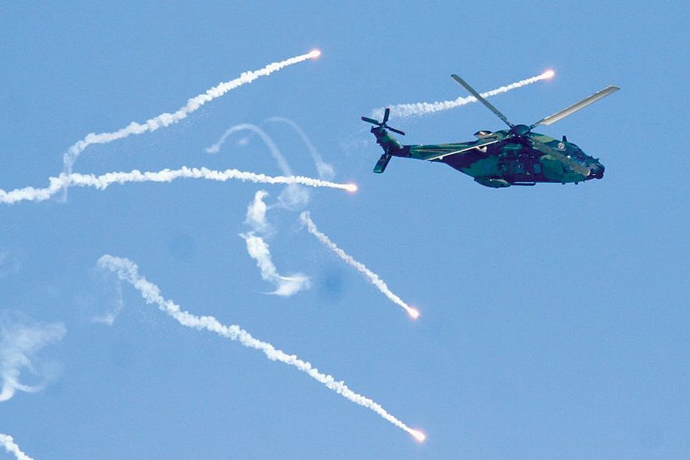 Ilmavoimien Hornetit ovat usein käyttäneet soihtuja esityksissään, mutta tiettävästi NH90-kopterit hyödyntävät niitä nyt ensimmäistä kertaa tehosteena yleisölle avoimessa tilaisuudessa (otsikkokuva).