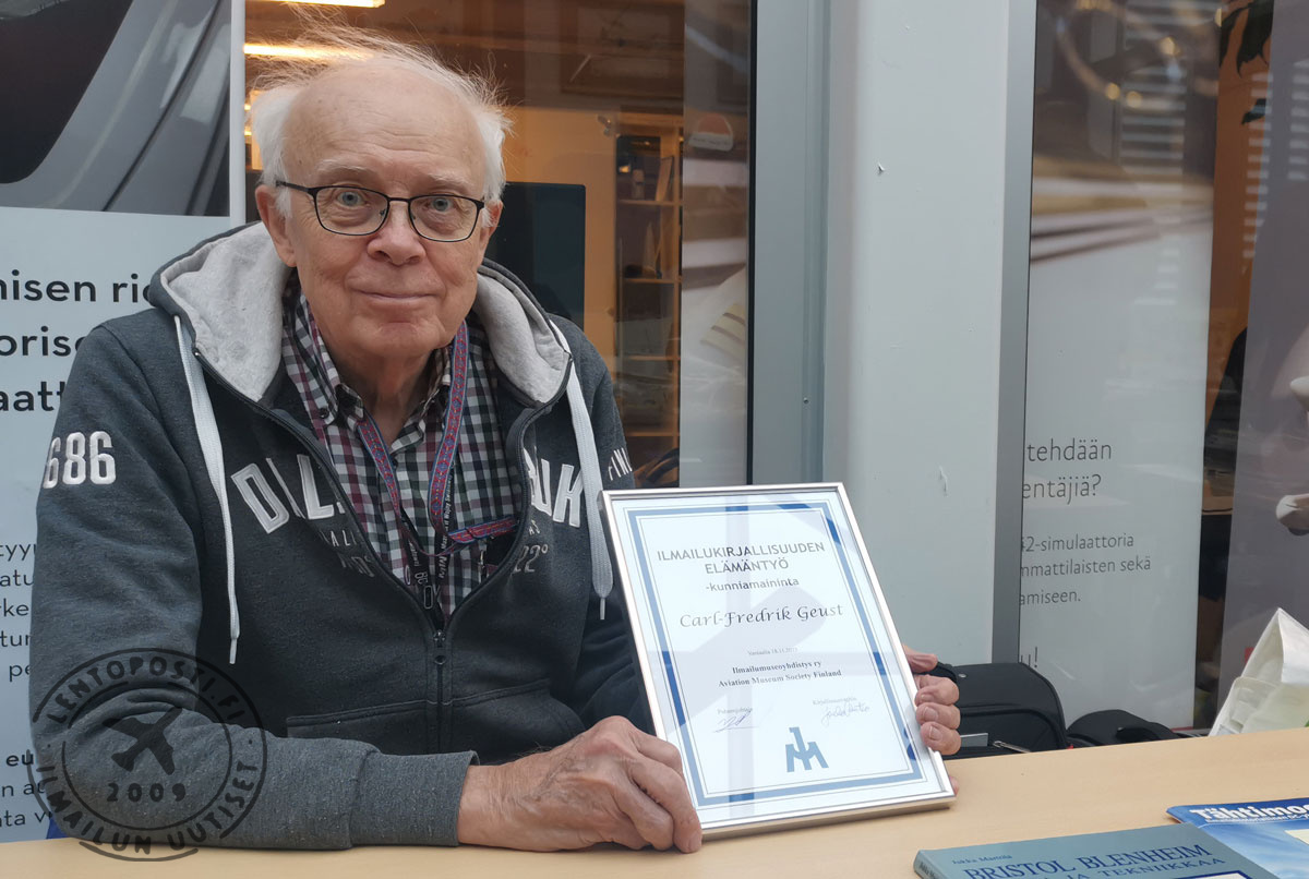 Geust palkittiin Suomen Ilmailumuseolla 18. marraskuuta 2023 järjestetyn perinteisen ilmailukirjallisuuspäivän yhteydessä. Ilmailukirjallisuuden Elämäntyö -kunniamaininta on Ilmailumuseoyhdistyksen (IMY) Ilmailukirjallisuusjaoksen jäsenistön esityksestä myöntämä kunniamaininta. Se voidaan myöntää henkilölle, jonka työn voidaan katsoa edellyttävän merkittävää ja julkista huomionosoitusta. Ilmailukirjallisuuden Elämäntyö myönnetään harkinnan mukaan korkeintaan kerran vuodessa. Maininnan voi saada vain kerran. Ilmailukirjallisuuspäivänä Ilmailumuseolla oli myynnissä laajasti ilmailukirjallisuusuutuuksia sekä vanhoja harvinaisuuksia ja muita ilmailutuotteita. Tapahtumassa järjestettiin perinteinen kirjahuutokauppa. MH