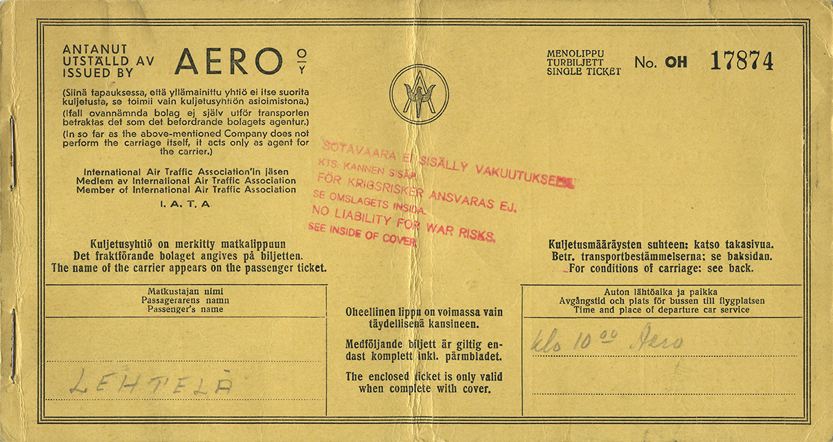 Matkustajahuolto ja etenkin ruokatarjoilu lennoilla oli aluksi melko vaatimatonta, mutta monipuolistui koneiden varustustason noustessa. Lennoilla tarjoiltujen aterioiden ruokalistoja kuuluu Ilmailumuseon kokoelmiin 1950-luvulta alkaen. Lisäksi Aero teetti käyttöönsä muun muassa lentolippuja, hinnastoja, lomakkeita ja turvaohjeita, sekä esimerkiksi postikortteja ja matkatavaratarroja jaettavaksi matkustajille. Digitoitu aineisto on käytettävissä vapaasti ei-kaupalliseen käyttöön. Julkaistaessa edellytetään lähteen asianmukaista mainitsemista. Museo ottaa mielellään vastaan lisätietoa aineistosta sekä myös lahjoituksina mahdollisia puuttuvia aikatauluja. Suomen Ilmailumuseon Finna-etusivu löytyy osoitteesta http://ilmailumuseo.finna.fi Lue myös: