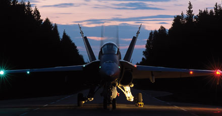 Lapin lennoston Hävittäjälentolaivue 11 lentää F/A-18 Hornet -monitoimihävittäjillä lentokoulutusohjelmien mukaisia yölentoja Rovaniemen tukikohdasta: viikolla 3 maanantaista torstaihin 17.–20.1.