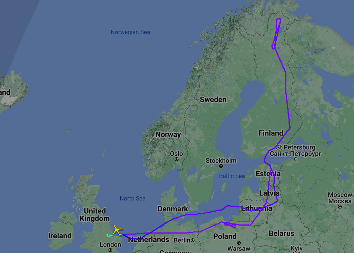 Suomen ilmatilaan RAF:n Rivet Joint saapui noin kello 14.00 Suomen aikaa. Lento jatkui Suomen itärajaa pitkin lentopinnalla 330 ja 350 kohti pohjoista. Tiedustelukone lensi kaksi edestakaista kierrosta Pohjoi-Suomen yllä ennen palaamistaan itärajaa pitkin kohti etelää. Suomesta poistumisen jälkeen tiedustelukone lensi Baltian halki Puolaan ja eteni Kalingradin etelärajaa pitkin palaten takaisin kotitukikohtaan Waddingtoniin.