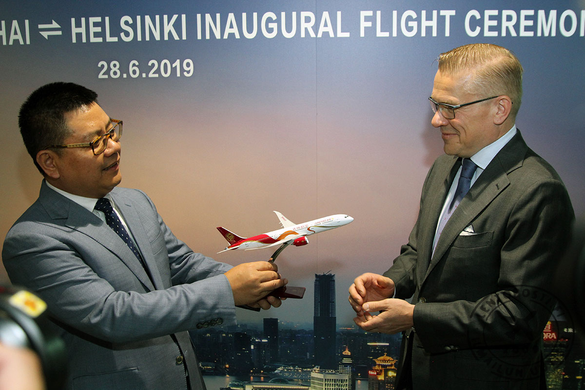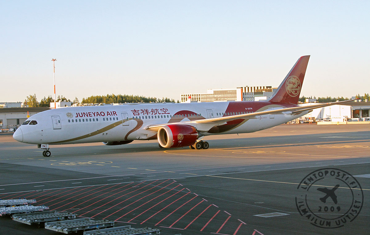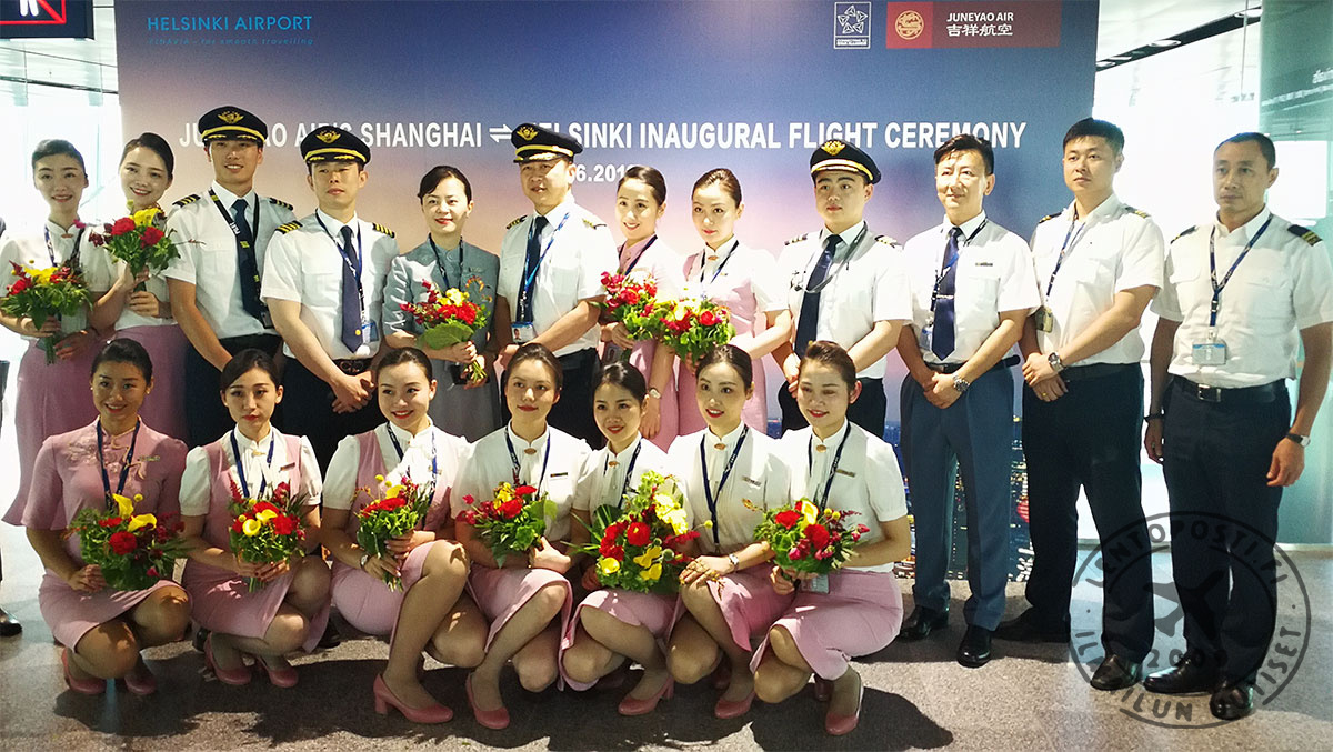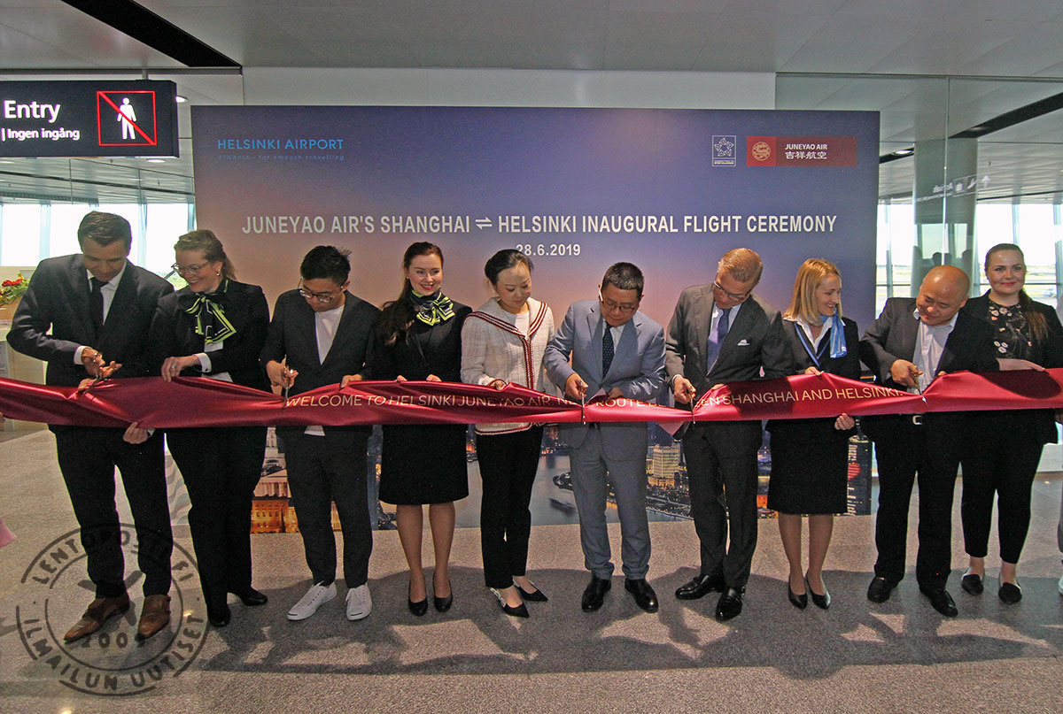 Juneyao Airin avauslennon Boeing 787-9 Dreamliner laskeutui Helsinki-Vantaalla varhain perjantaiaamuna 28. kesäkuuta. Juneyaon Air on nyt toinen Helsinki-Vantaalle operoiva kiinalainen lentoyhtiö. Reitti Helsinki-Vantaalle on Juneyao Airin ainoa mannertenvälinen lento. Avaus tuo merkittävää lisäkapasiteettia Helsinki-Shanghai välille ja yhteistyö Finnairin kanssa on jo käynnistetty.
