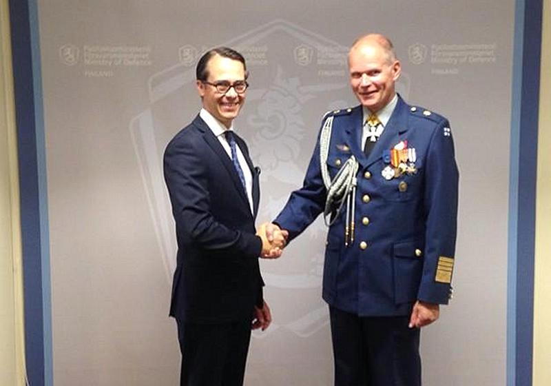 Entisen Ilmavoimien komentajan, kenraaliksi 1. elokuuta ylennetyn Jarmo Lindbergin ensimmäinen päivä puolustusvoimien komentajana käynnistyi tyypilliseen tapaan pyörälenkillä Helsingin rannoilla. Ensimmäinen työtehtävä oli ilmoittautuminen puolustusministeri Carl Haglundille (puolustusministerin Twitterissä julkaisema kuva alla, klikkaa kuvat suuremmaksi).