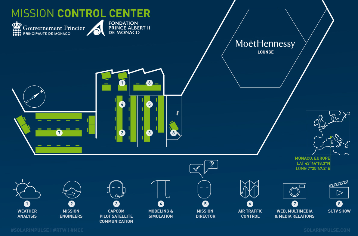Lentosarjan kulkua seurataan tarkasti Monacossa sijaitsevasta Mission Control Centeristä, jossa paikalla ovat tehtävän johtajan lisäksi sääennustajat, insinöörit, mallintajat, satelliittiyhteysryhmä, lennonjohto, PR-ryhmä ja SI TV-ryhmä.