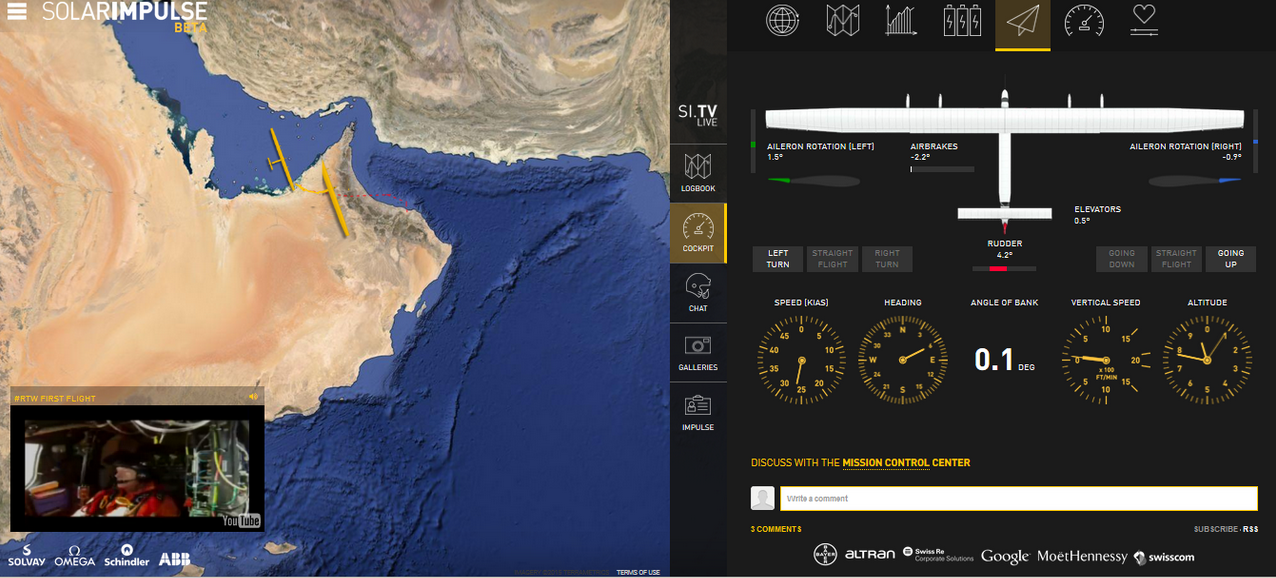 Si2-koneen lentoa voi seurata myös lentäjän näkökulmasta (sivu sattaa latautua suuren kuormituksen takia hitaasti)