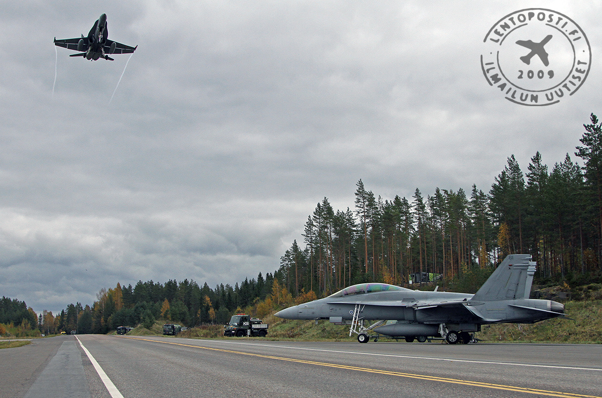 Käytössä on 2300-metrinen normaalia leveämpi osuus Lahdesta Mikkeliin johtavaa vitostietä eli ns. Lusin suora (yllä, klikkaa kuvat suuremmaksi). Harjoituksen ajaksi sen ympärille rakennetaan lentotoiminnan mahdollistava varustus. Tien varteen tuodaan mm. lennonjohto- ja sääasemakontit.
