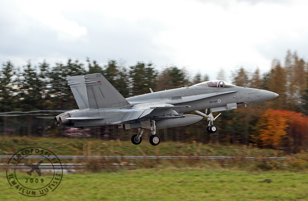 Myös luonto on läsnä toimittaessa maaseudulla. Lennonjohtokontin viereisellä pellolla lentotoimintaa seurasi tyynesti neljän joutsenen parvi. Tiistai-iltana saatiin puolestaan havaintoja hirvistä ja kaksi Hornetia jäikin yöksi tukikohtaan. Varmuuden vuoksi lentoonlähtöä ei tehty pimeässä hirvivaaran takia. Miksi maantiellä?