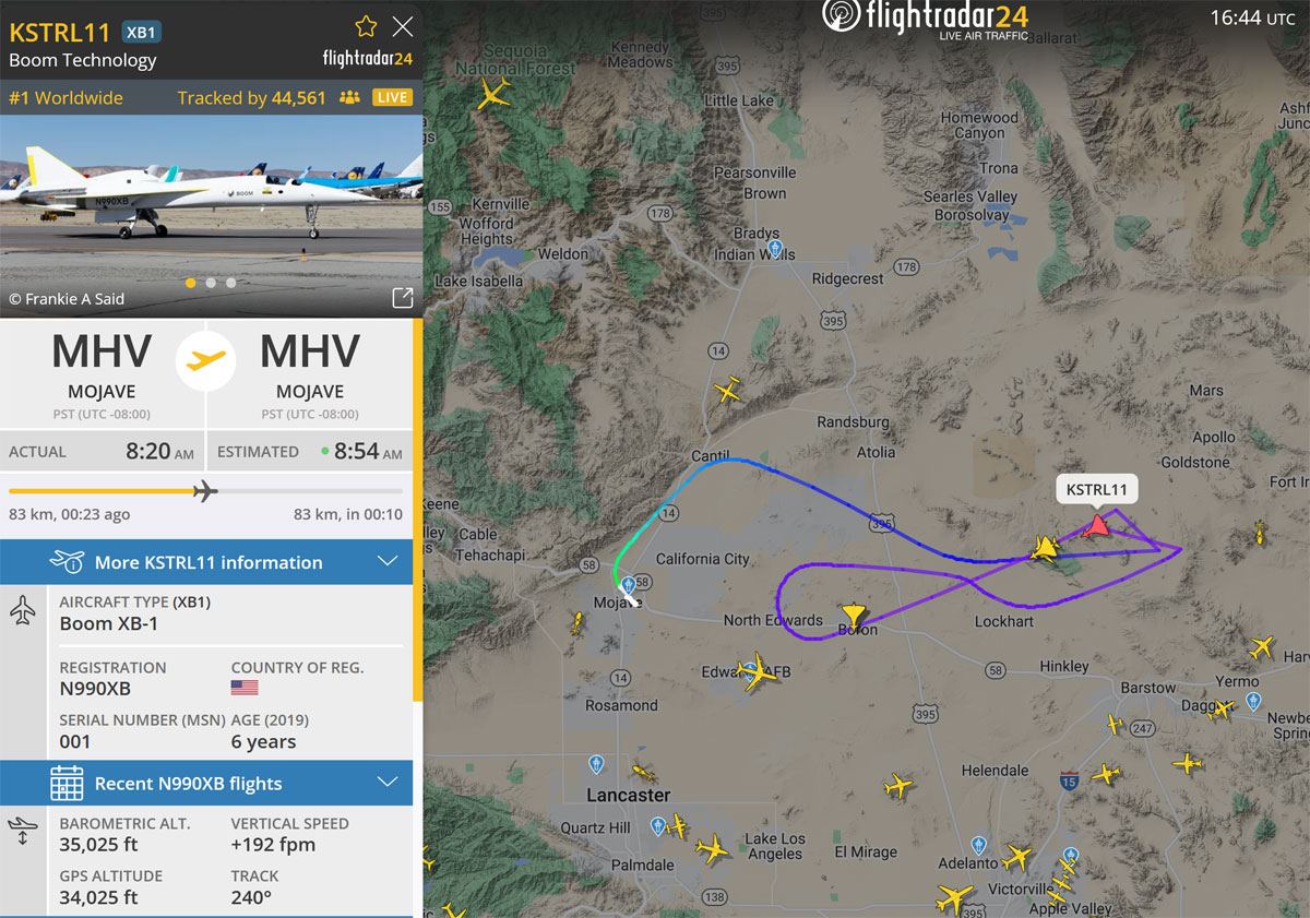 Boom Supersonicin pääkoelentäjä Tristan “Geppetto” Brandenburg on nyt ensimmäinen, joka on lentänyt ääntä nopeammin yksityisrahoitteisesti kehitetyllä lentokoneella. XB-1 -koneessa on käytössä uudenlainen kehittynyt työntövoimajärjestelmä, jonka kolme General Electric J85-15 -moottoria tarjoavat 16 kN työntövoiman. Moottoreiden ilmanottoaukko hidastaa ylisoonisen ilmavirtauksen alisooniseksi ja muuttaessaan kineettisen energian paine-energiaksi mahdollistavat koneelle ylisooniset nopeudet tavallisilla suihkumoottoreilla. Boom Supersonic kehittää Overture-matkustajakonetta, jonka on määrä palauttaa kaupalliset ylisooniset lennot. Boom Supersonic on saanut 1,7 Machin nopeuteen yltävästä 80-paikkaisesta matkustajakoneesta jo 130 tilausta. Tilaajien joukossa ovat American Airlines, United Airlines sekä Japan Airlines. Overture hankkeessa kehitetään parhaillaan uutta Symphony-moottoria. Ensimmäisen koneen rakentaminen alkaa Overture-tehtaalla Pohjois-Carolinan Greensborossa 18 kuukauden kuluttua. Ensilentoa odotellaan tapahtuvaksi neljän vuoden päästä eli vuonna 2029. MH Päivitys: Korjattu virallinen suurin nopeus olemaan 1,122 Machia aiemmin kerrotun 1,11 Machin sijaan. Lue myös: