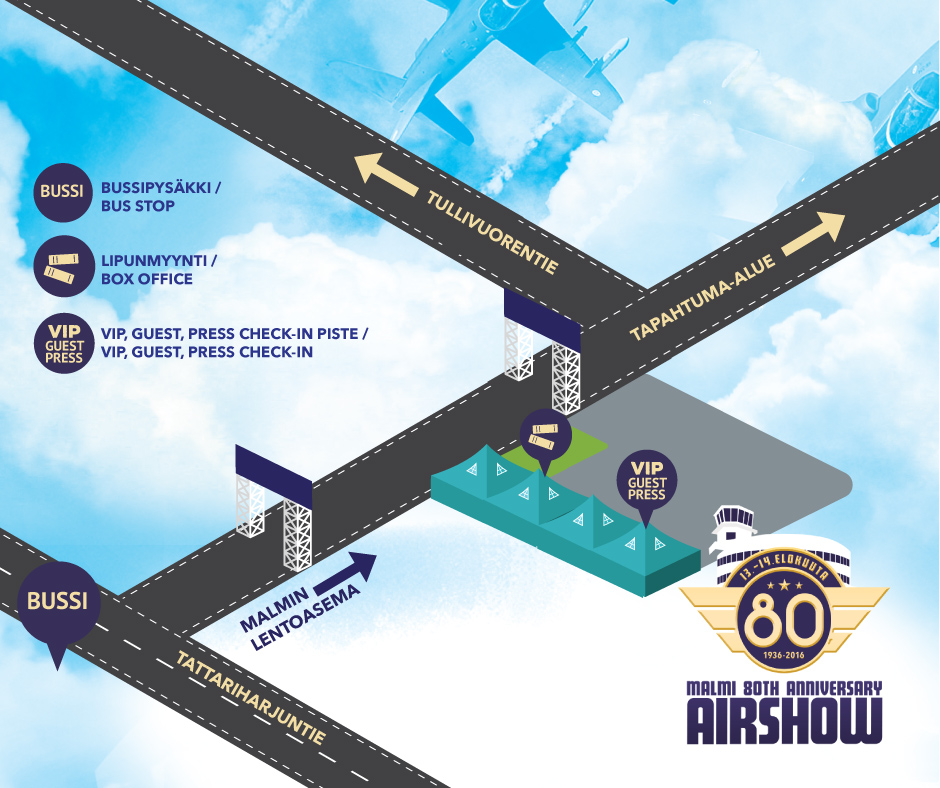 Mynnissä on ainoastaan meno-paluu -lippuja, joiden hinta on seitsemän euroa. Alle 10-vuotias pääsee maksavan aikuisen seurassa ilmaiseksi. Pysäköinti Messukeskuksella on myös maksullinen. Viimeiset paluubussit lähtevät Malmilta kaikkiin kolmeen kohteeseen kello 19.00. Tulevan viikonlopun Malmi 80th Anniversary lentonäytös on vaarassa jäädä viimeiseksi, joka järjestetään Helsingin omalla lentokentällä. Asuntotuotanto uhkaa lopettaa ilmailun Malmin lentoasemalla jo hyvinkin pian ja lentonäytösten järjestäminen pääkaupunkiseudulla vaikeutuu merkittävästi.