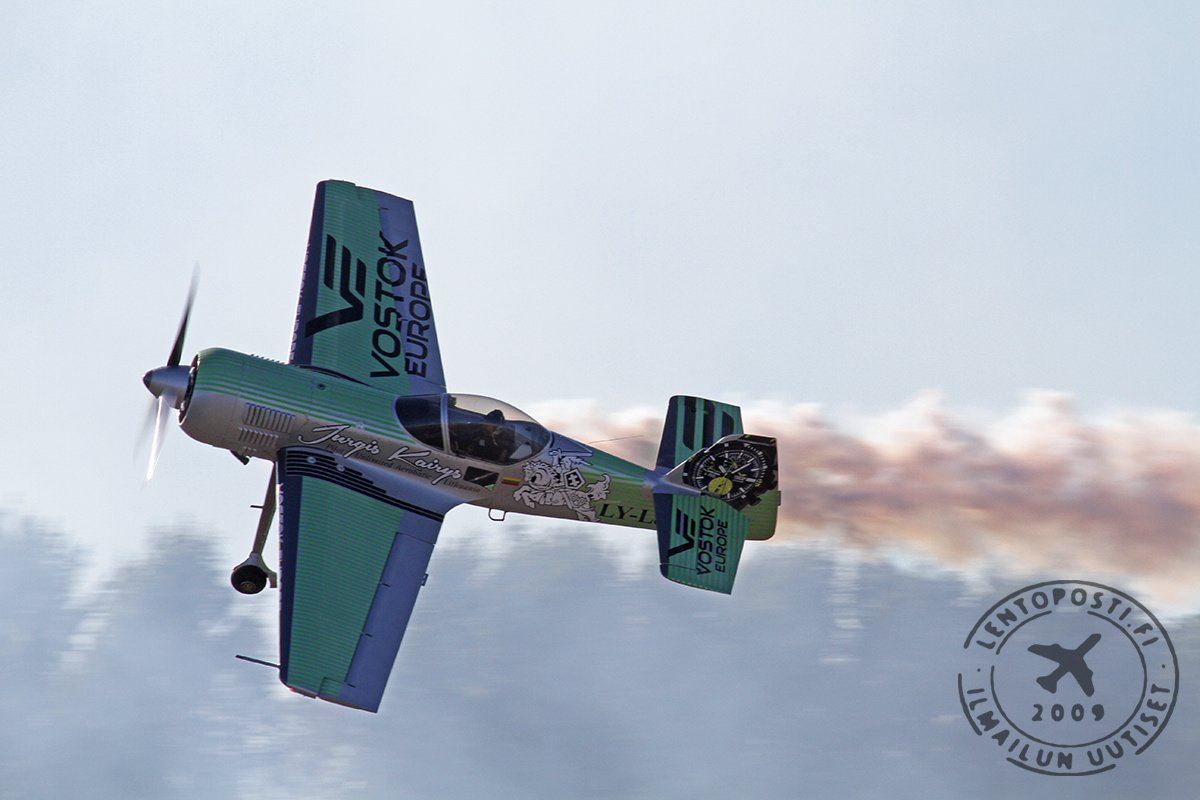 Iltapäivästä on luvassa entistä näyttävämpää ohjelmaa, kun vauhtiin pääsee liettualainen taitolentohurjapää Jurgis Kairys. Hän esiintyy näytöksessä omalla ohjelmallaan sekä yhdessä Skandinavian Airshown Jacob Holläderin kanssa.