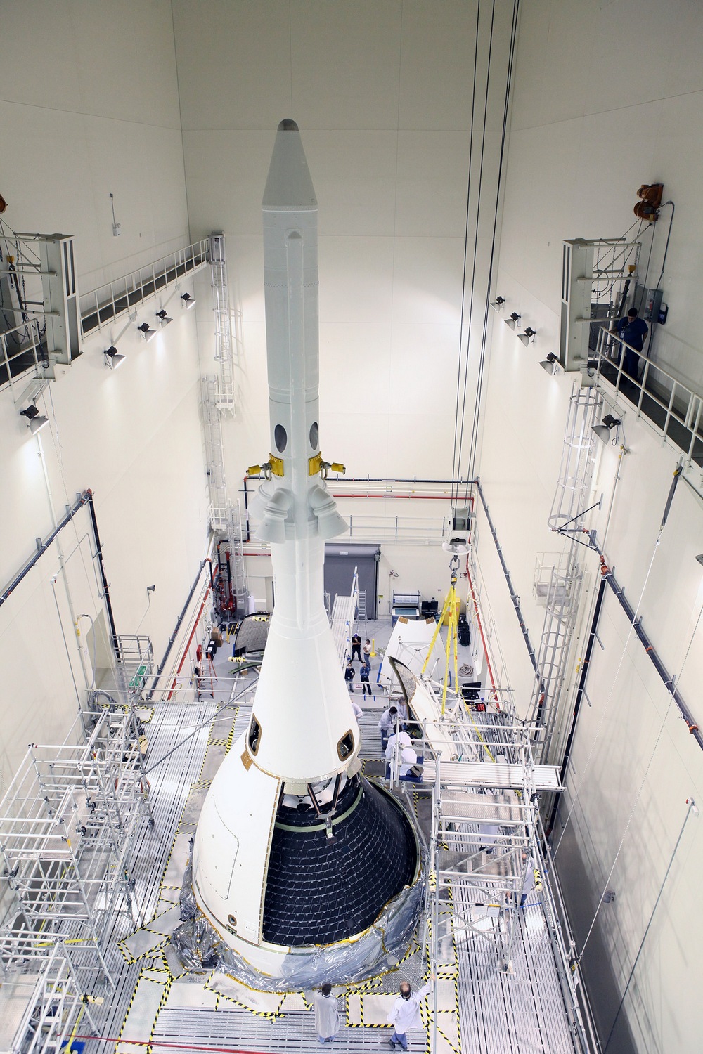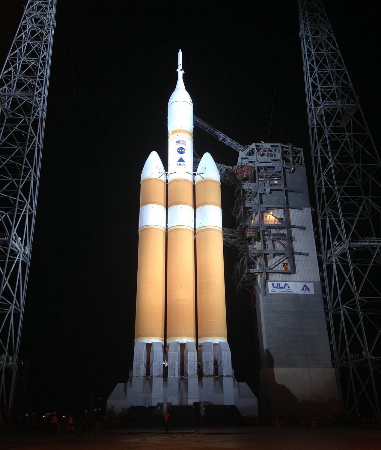 Kiertoradalla Orion lentää kiinnitettynä huoltomoduliin (kuvat jutun lopussa). Se on varustettu moottorilla. Koko paketti painaa pelastustorneineen 21 000 kiloa. Orionin ensimmäinen miehittämätön koelento kestää vain 4 tuntia 23 minuuttia. Se laukaistaan kiertoradalle United Launch Alliance Delta IV Heavy -kantoraketilla (kuvassa oikealla). Kolmesta Common Booster Core -rungosta koostuvan Deltan IV Heavyn Aerojet Rocketdyne RS-68A -moottoreiden polttoaineena on nestemäinen happi ja vety. Lähtöpaikkana on perinteisen Cape Canaveralin Space Launch Complex 37 -alusta Floridassa. Avaruudessa kapselin muotosuojat irtoavat ja alus irtoaa kantoraketista. Orion huoltomoduleineen kiertää maapalloa korkeimmillaan 5800 kilometrin korkeudessa. Näin kaukana maapallosta ihmisen kuljettamiseen tarkoittanut laite ei ole ollut yli 40 vuoteen.