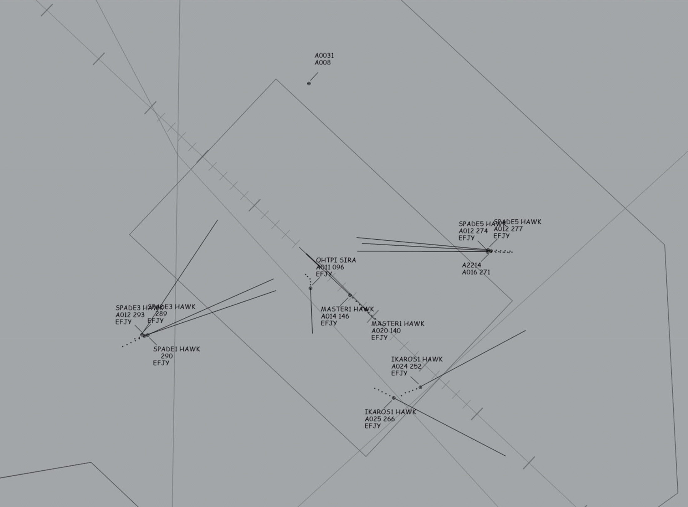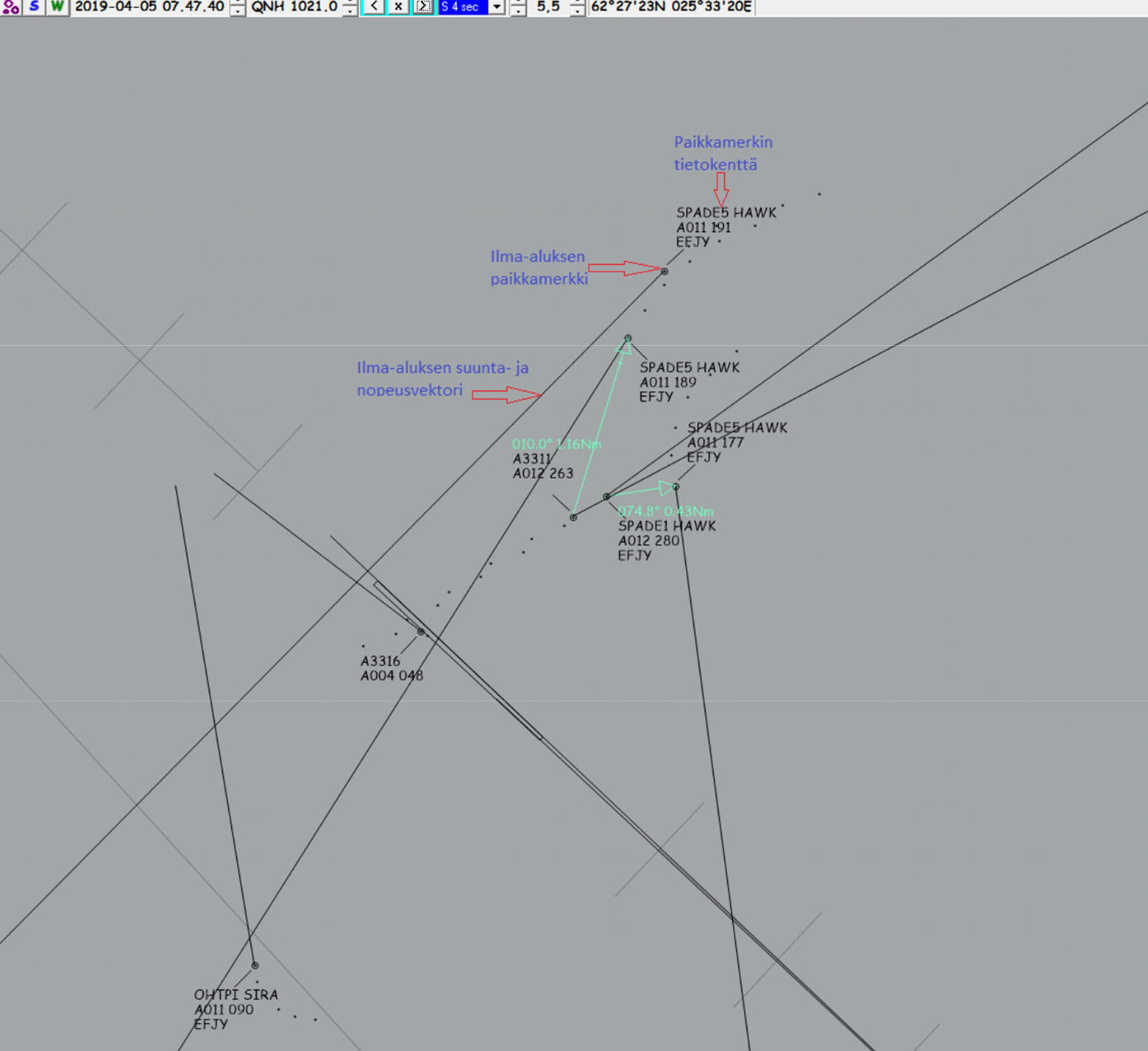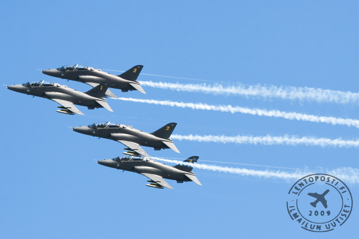 Spade1-osaston johtaja näki myötätuuleen liittyvät lentokoneet ja ilmoitti lennonjohdolle lentävänsä edessä yläpuolella kaartavan Hawk-parven läpi. Onnettomuustutkintakeskuksen loppuraportin mukaan Hawkeilla oli väistöhetkellä nopeutta 295 solmua eli noin 531 km/h. OH-TPI ei nähnyt noin yhden merimailin eli noin 1,8 kilometrin etäisyydeltä ja alle 200 jalkaa eli noin 60 metriä yläpuolelta lentänyttä Spade1-osastoa.