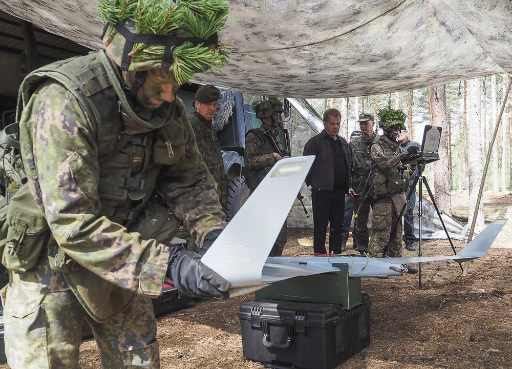 Ryhmä tutustui myös lämpöhakuisiin ja olalta laukaistaviin Raytheon FIM-92 Stinger RMP Block 1 -ilmatorjuntaohjuksiin (yllä). Ne kulkevat koteloissa maastoskootterin lavalla. Metsässä ampuja pääsee puiden latvojen tasolle henkilönostimella. Israelissa valmistettua Orbiter II -minilennokkia käytetään maavoimien joukkotuotannon mukaisessa koulutuksessa. Järjestelmää operoi koulutettu varusmiesryhmä. Kaakko16-harjoituksessa Orbiteria lennättämässä on varusmiehiä, jotka ovat myös siviilissä lennokkiharrastajia. Orbiter II -lennokin kärkiväli on noin kolme metriä. Siinä ei ole peräsinpintoja vaan se on ns. lentävä siipi -tyyppiä. Siivenkärjissä on suuret wingletit (kuva alla). Lyhyen rungon etuosassa on sensoripaketti ja takana moottori.
