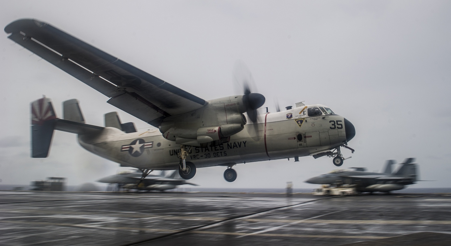 Se on perusrakenteeltaan samanlainen kuin kahdella potkuriturbiinimoottorilla varustettu Grumman E-2 Hawkeye AWACS-tutkavalvontakone. Greyhoundin runko on kuitenkin suurempi kuljetuskonetehtäviä varten. USS Theodore Roosevelt CVN-71 on Yhdysvaltain merivoimien Nimitz-luokan ydinkäyttöinen lentotukialus. Niitä on rakennettu kaikkiaan 10 kappaletta. Rooseveltin köli laskettiin 1981 ja se otettiin käyttöön 1986. CVN-71 valmistui luokkansa neljäntenä. Miehistön antama lempinimi alukselle on The Big Stick. Se tulee Rooseveltin vuoden 1901 ajatelmasta: Speak softly and carry a Big Stick; you will go far.