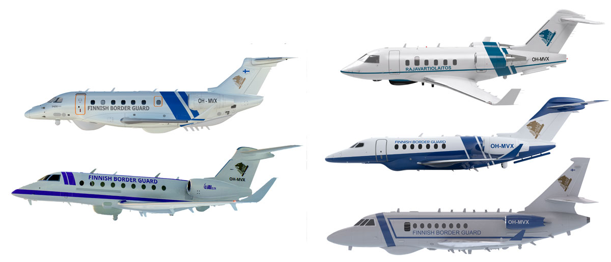 MVX-hankkeessa Rajavartiolaitoksen MVX-koneita on esitetty sini-valkoisissa sekä nykyisin käytössä olevan kaltaisessa maalauskaaviossa. MVX-hanketoimisto vahvisti Lentoposti.fi:lle, että tulevien lentokoneiden väristä ei ole vielä tehty mitään päätöksiä ja kaikki tässä vaiheessa esillä olleet kuvat ovat ainoastaan havainnekuvia. MH Lue myös aikaisemmat MVX-hankeuutisemme: