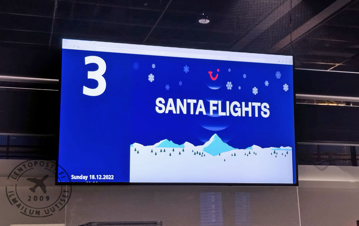 Lentoaseman lähtöselvitysaulassa oli melkoinen vilske. TUI Airwaysin viidelle lennolle oli avattu yhteensä seitsemän Santa Flights -tiskiä, jonka lisäksi muilla lentoyhtiöillä oli käytössä omat lähtöselvitystiskinsä.