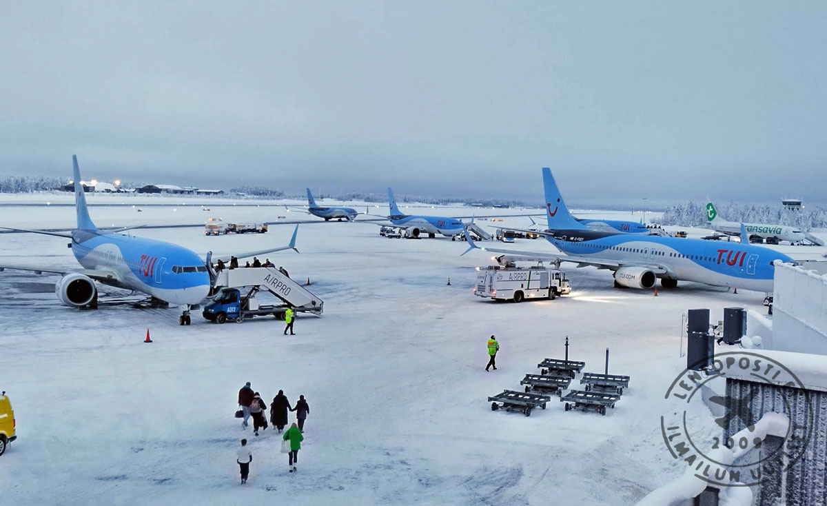 RVN_TUI_fleet"Joulukuun viikonloput ovat vilkkaita ja yleensä viikonloppu ennen joulua on ollut se vilkkain matkustusviikonloppu. Nyt lauantaina ja sunnuntaina meidän listoilla on 53 lentoa", kertoi Finavian Rovaniemen lentoaseman päällikkö Johan Juujärvi Lentoposti.fi:lle.