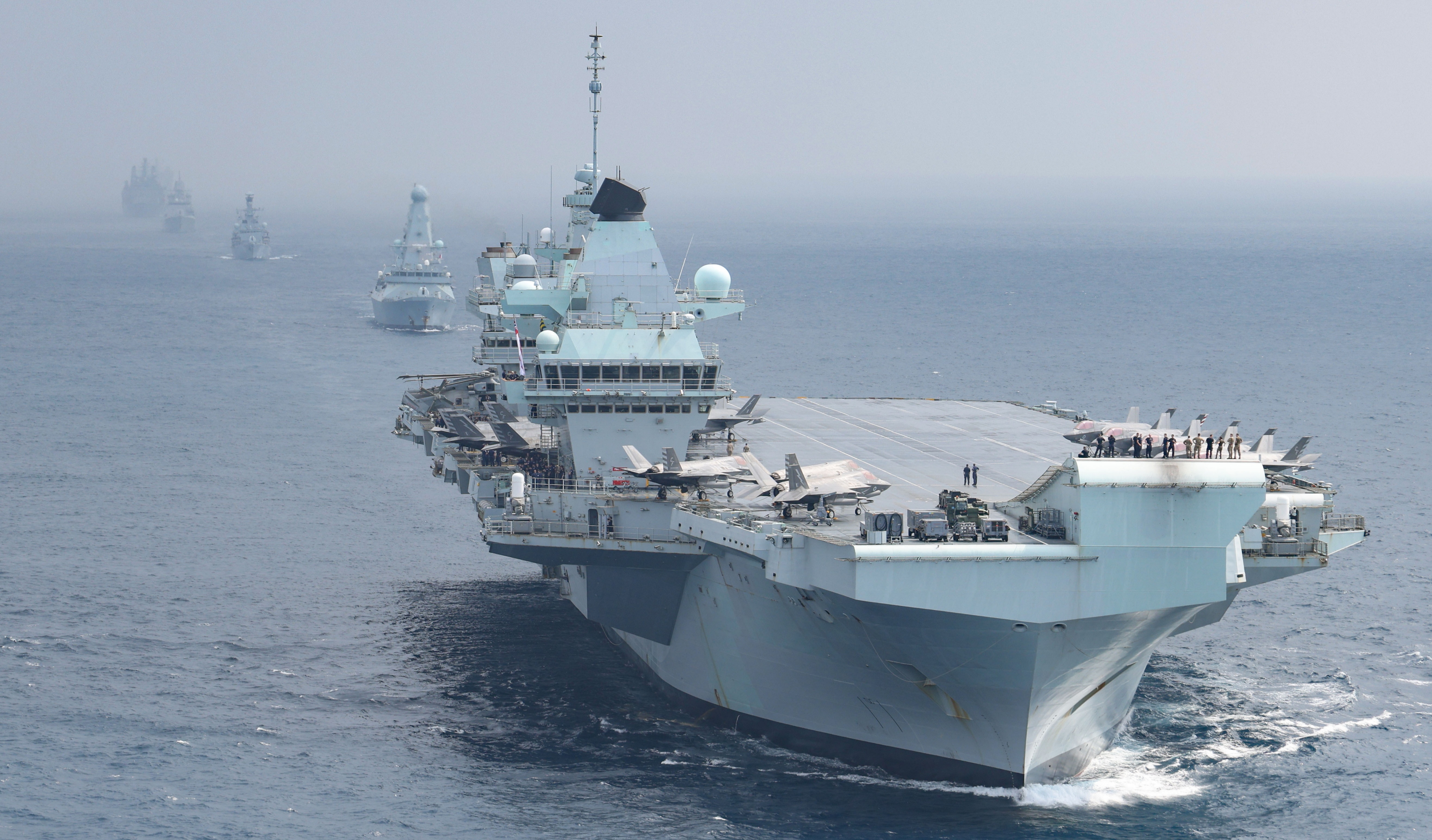 280-metrisen HMS Queen Elisabethin kannelta toimii harjoituksen aikana mm. Lockheed Martin F-35B -hävittäjiä. Sen suojiin mahtuu jopa 40 hävittäjää. Lentotukialuksen todellinen erikoisuus on sieltä käsin nyt käynnissä olevalla purjehduksella toimivat kaksi päivitettyä ilmavalvontatutkalla varustettua Merlin Mk2 ASaC "Baggers" -helikopteria (Airborne Surveillance and Control).