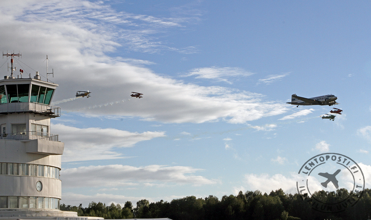 Ensimmäisen lentonäytöspäivän päätteeksi Airveteranin Douglas DC-3 ja kotimainen taitolentoryhmä Arctic Eagles nousivat ilmaan ja lensivät viidellä koneella näyttävän muodostelmalennon Helsingin keskustan yli. Näytöksen lauantain viimeinen ohjelmanumero oli ohilento Malmin lentoasemalla hieman ennen puolta kahdeksaa.