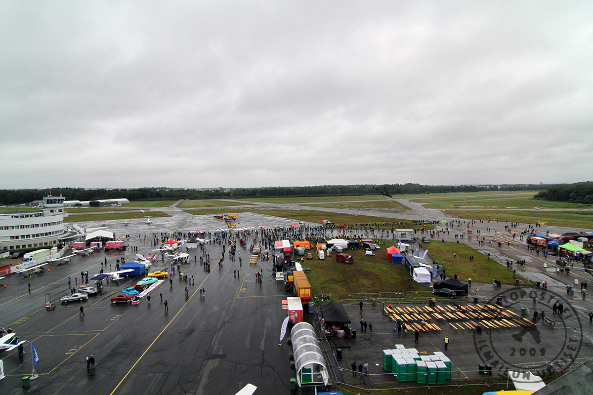 Kun Helsinki-Malmin lentoaseman 80-vuotisnäytöksen ovet avautuivat kello 10, ensimmäiset katsojat saapuivat heti paikalle. Heitä ei varsinaisesti riittänyt ruuhkaksi asti, mutta yleisöä oli kuitenkin niin paljon että näyttelyalueelle syntyi eloa. Hieman aiemmin alkanut sade ajoi väkeä heti esittelijöiden telttohin ja muihin vastaaviin suojiin.