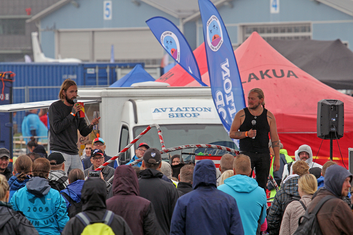 Kunhan pilvikorkeus ja vaakanäkyvyys pysyvät määräykset täyttävinä, koneet ja kopterit lentävät. Taukojen ajaksi maanäyttelyssä riittää nähtävää niin harraste- kuin ammatti-ilmailupuolen toimijoiden osastoilla. Ja eräänlaisena bonuksena on se, että ruuhkia lentonäytöspaikalle eikä jonoja alueen palveluihin juuri ole. T.T.