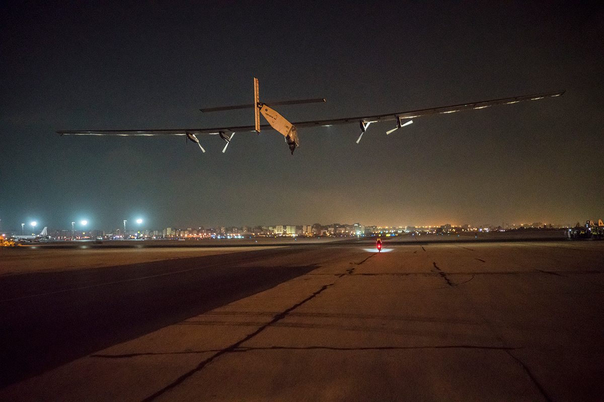 Solar Impulse 2 -aurinkolentokone (Si2) nousi aamuyöllä ilmaan Egyptin Kairosta. Matka maailmanympäri on vihdoin edennyt viimeiselle etapille kohti Abu Dhabia, jonne sen odotetaan saapuvan kahden päivän ja kahden yön mittaisen lennon päätteeksi.