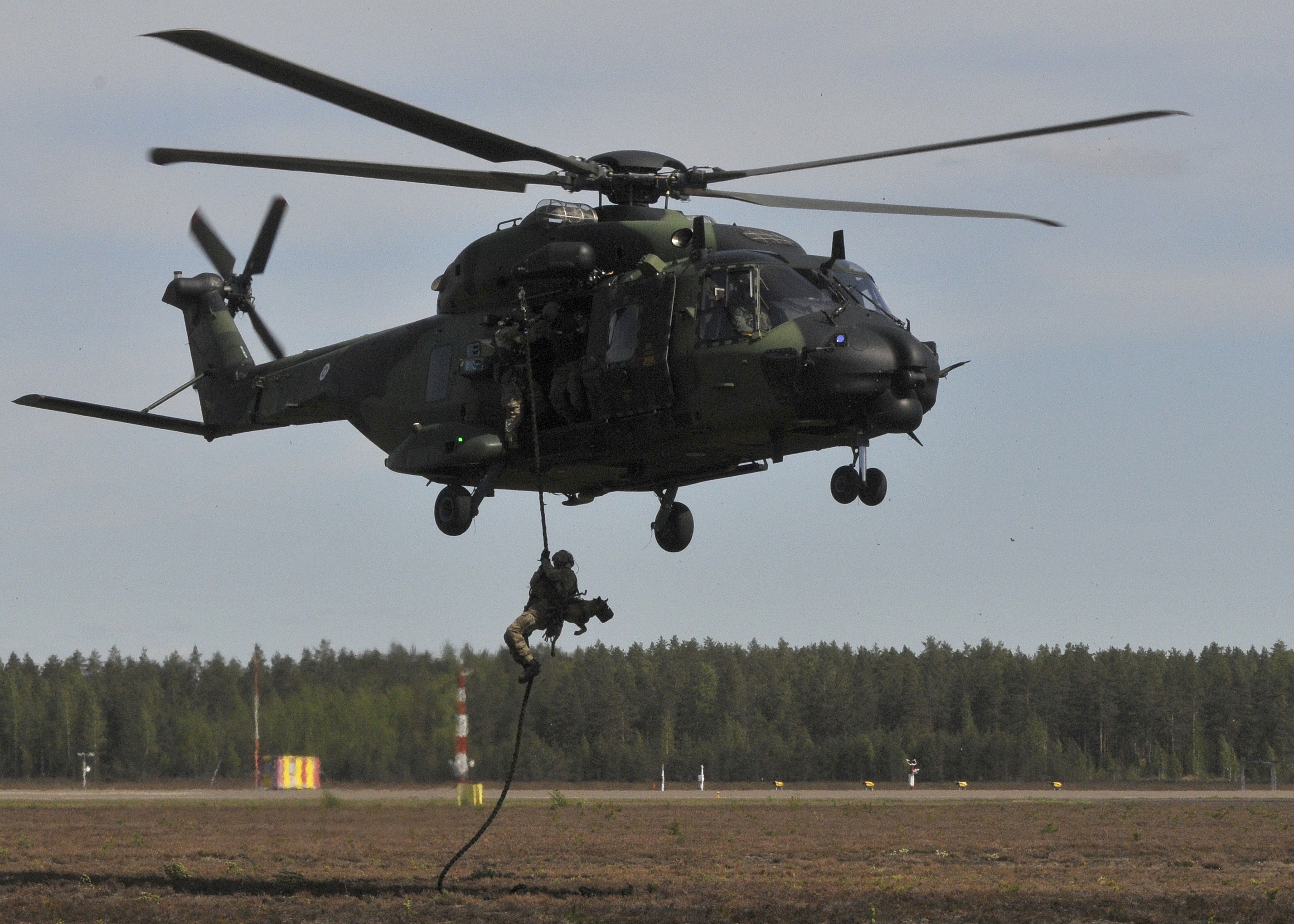 Maanäyttelyissä on aina esitelty monipuolisesti lentotekniikkaa ja muuta Ilmavoimiin liittyvää tutkista tankkiautoihin. Myös tukikohtia turvaavat sotilaspoliisit ovat luonnollisesti mukana. Utin jääkärirykmentin toimintanäytöspäivän pääosassa ovat puolestaan Helikipteripataljoonan omat NH Industries NH90 -kuljetushelikopterit ja kevyet koulutuksessa käytettävät Hughes MD500 -kopterit. Myös Ilmavoimat on mukana tässäkin tapahtumassa. Utissa keskeistä osaa tarjonnassa näyttelee laskuvarjojääkärien ja erikoisjoukkojen koulutuksen esittely. Päivän nimen mukaisesti luvassa on toimintanäytöksiä yhdessä helikopterien kanssa (kuvassa alla, klikkaa suuremmaksi). T.T. Tänä vuonna toukokuun kalenteri näyttää tältä: Perjantai 12.5: Sotilasilmailusta ammatti -tapahtuma Lapin Lennostossa Rovaniemellä Perjantai 12.5: Utin jääkärirykmentin toimintanäytöspäivä Utissa Tiistai 16.5: Sotilasilmailusta ammatti -tapahtuma Satakunnan Lennostossa Pirkkalassa Keskiviikko 17.5: Sotilasilmailusta ammatti -tapahtuma Karjalan Lennostossa Rissalassa Torstai 18.5: Sotilasilmailusta ammatti -tapahtuma Ilmasotakoulussa Tikkakoskella Tarkemmat ohjelmat ja kellonajat ovat vielä vahvistamatta. Tapahtumista kiinnostuneiden kannattaa seurata Ilmavoimien ja Utin jääkärirykmentin nettisivuja. Lue Lentoposti.fi -juttuja aiemmista tapahtumista: