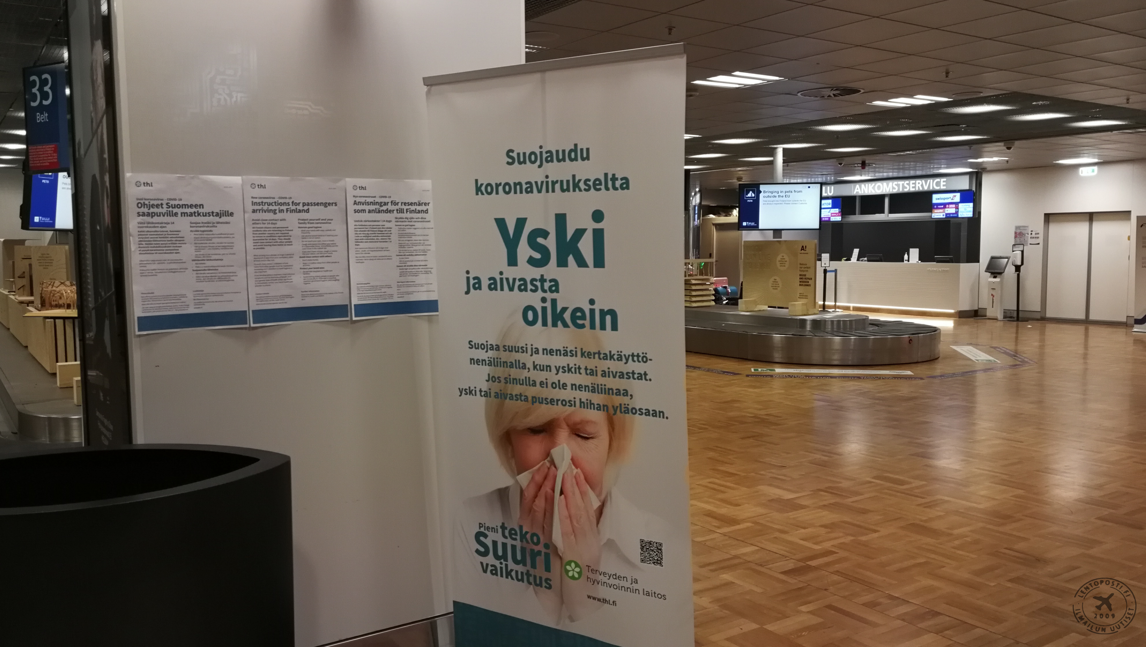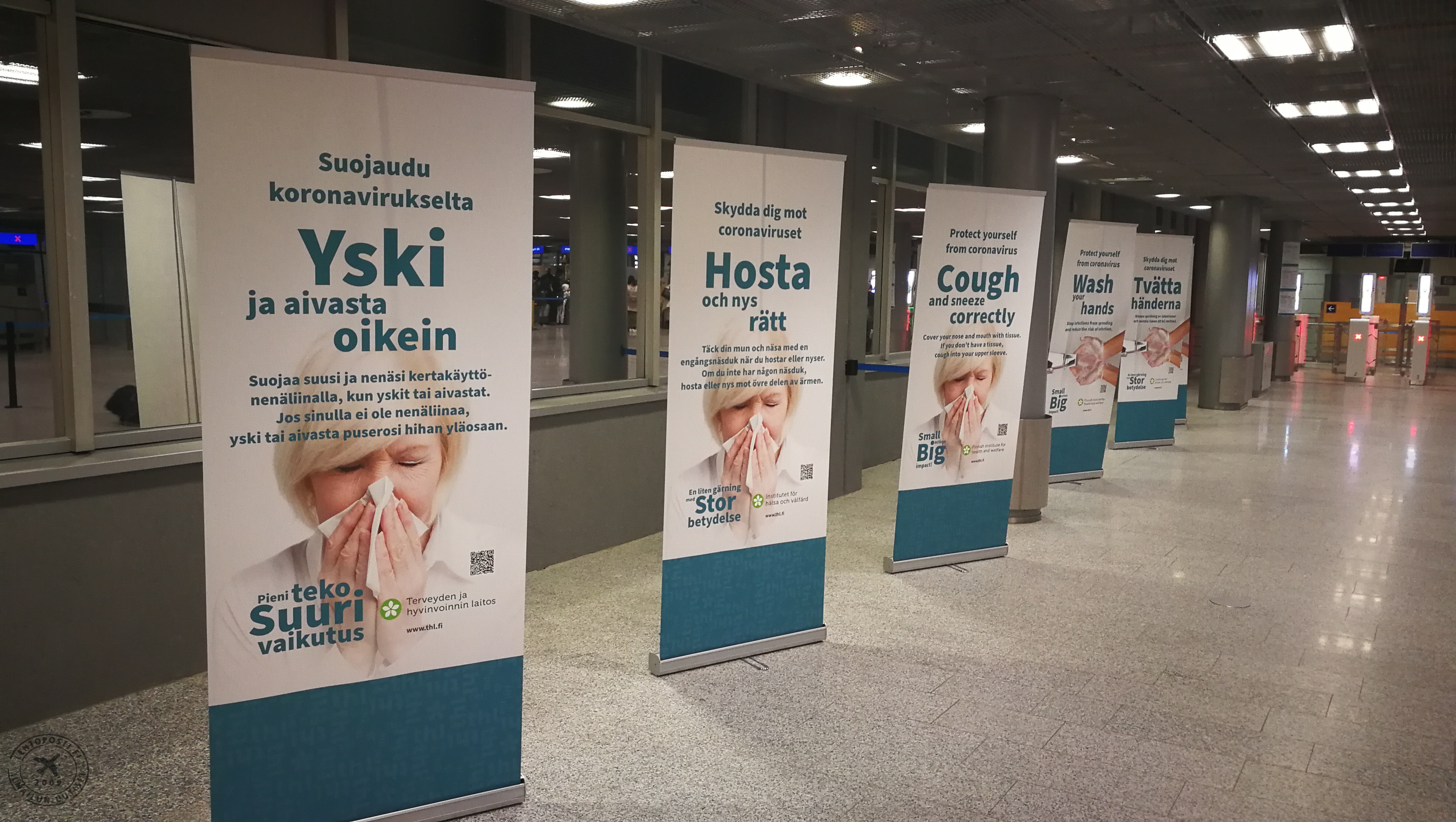 Terveydenhuollon ammattilaiset ja SPR:n vapaaehtoiset työskentelevät kahdessa vuorossa, joten paikalla on aina osaavia ihmisiä auttamassa terveydenhoitoon liittyvissä kysymyksissä. THL:n jatkamaa koronavirustietoutta on tarjolla tuloaulassa merkittävästi julisteina ja tietopaketteina. Samaa tietoa jaetaan myös lentoaseman bussiasemalla, taksiasemalla ja juna-asemalla. Terminaaleissa on lisäksi kuulutukset suomeksi, ruotsiksi ja englanniksi koskien karanteenia. Koska saapuvia matkailijoita on paljon, on lentoasemalla kiinnitetty erityistä huomiota palaavien matkailijoiden liikkumiseen lentoasemalla ja sen lähistöllä.