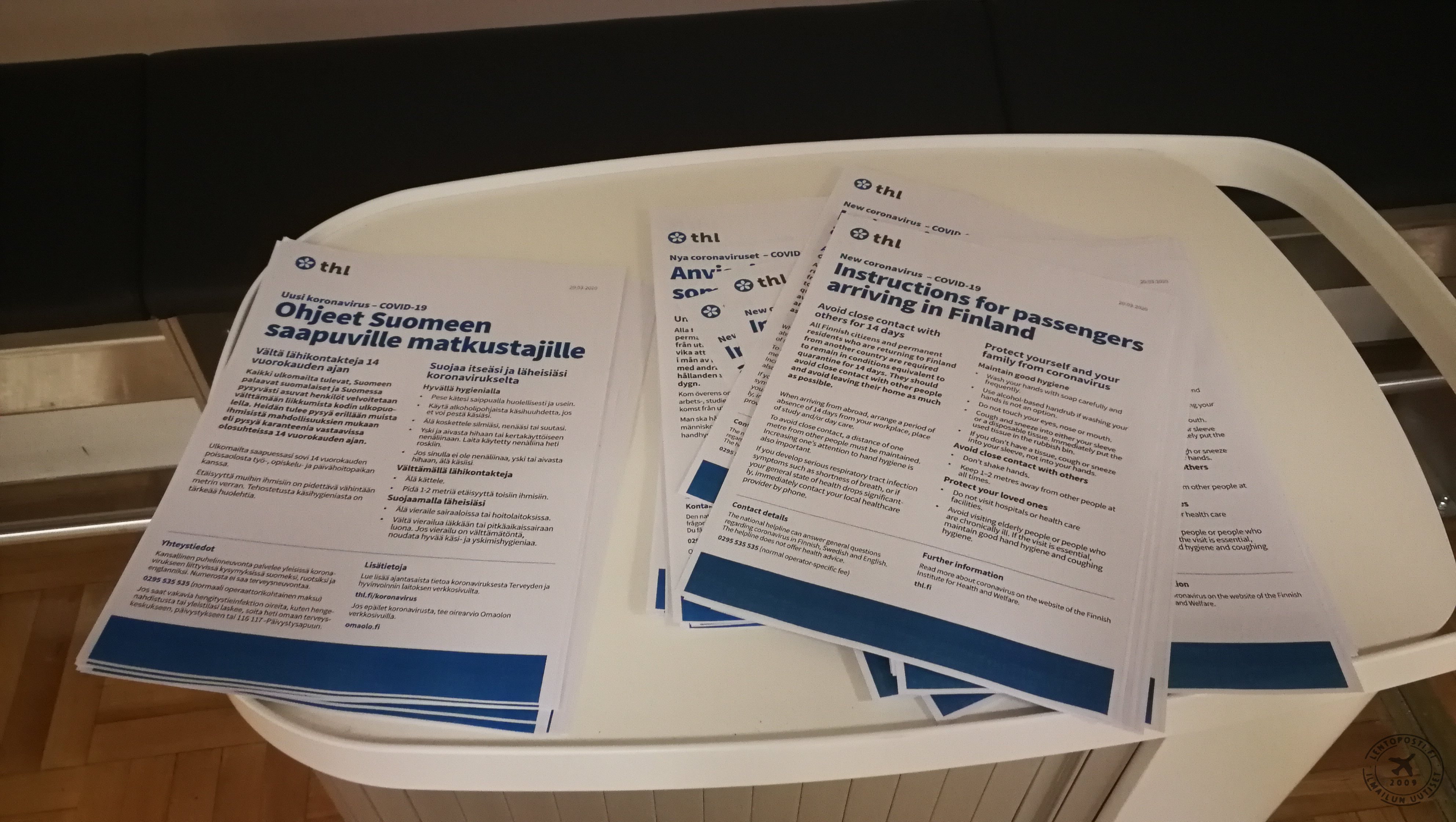 Matkustajille on järjestetty rajatarkastuksen edustalla odotustilat, joissa he voivat odottaa ennen rajatarkastukseen siirtymistä. Tämä on tarpeen siksi, että lennoilta saapuvien matkustajien on mahdollista odottaa väljemmin kuin tiiviissä jonossa. Lennoilta saapuvien henkilöiden määrää rajoitetaan lentokenttäbusseissa, jotka tuovat matkustajat koneesta terminaaliin. Lisäksi saapuvia matkustajia ohjeistetaan myös kotiin siirtymisessä muun muassa kuulutuksin. Ulkomaan lennoilta saapuvia matkustajia kehotetaan välttämään julkista liikennettä koronaviruksen leviämisen ehkäisemiseksi. Rajalla jo karanteeniin määrättyjen henkilöiden on pidättäydyttävä mahdollisuuksien mukaan julkisen liikenteen käytöstä ja noudatettava saatuja ohjeita. THL ja Turun yliopiston tekemän mallinnuksen mukaan noin 11 300 ihmisen arvioidaan tarvitsevan Suomessa sairaalahoitoa uuden koronaviruksen vuoksi. Heistä tehohoitoa tarvitsee 3 600 potilasta.