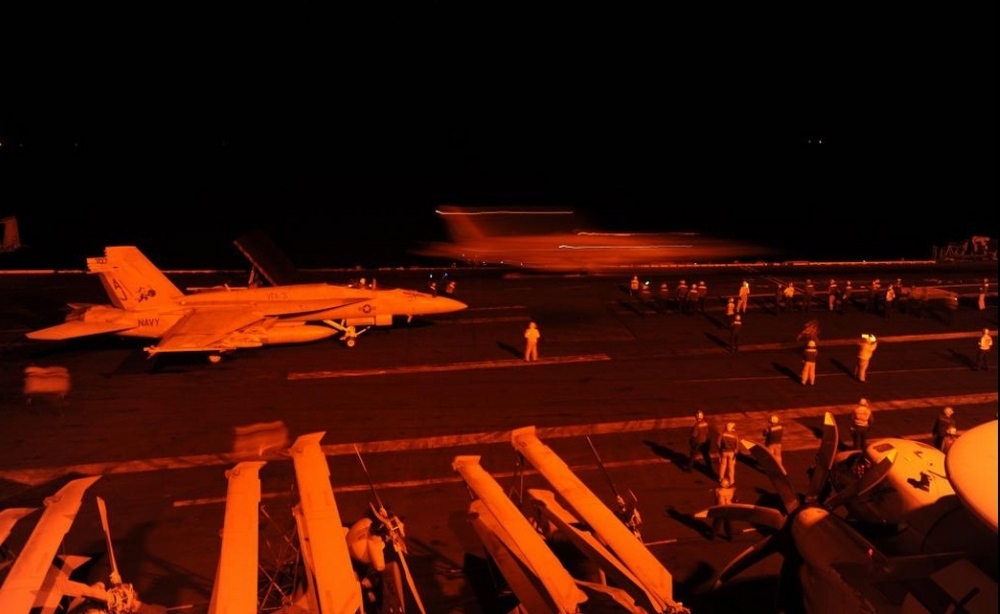 USA on aiemmin hyökännyt ilmasta Isis-kohteisiin Irakissa yhteensä 194 kertaa. Mukana on ollut myös ranskalaisia Dassault Rafale -hävittäjiä. Nyt iskuja laajennettiin Syyrian alueelle, jossa Isis-järjestön tukialueet sijaitsevat. Iskuja tehtiin kolmessa aallossa yhteensä 14 kohteeseen. Mukana oli hävittäjiä, pommikoneita, miehittämättömiä ilma-aluksia sekä mereltä laukaistuja risteilyohjuksia.