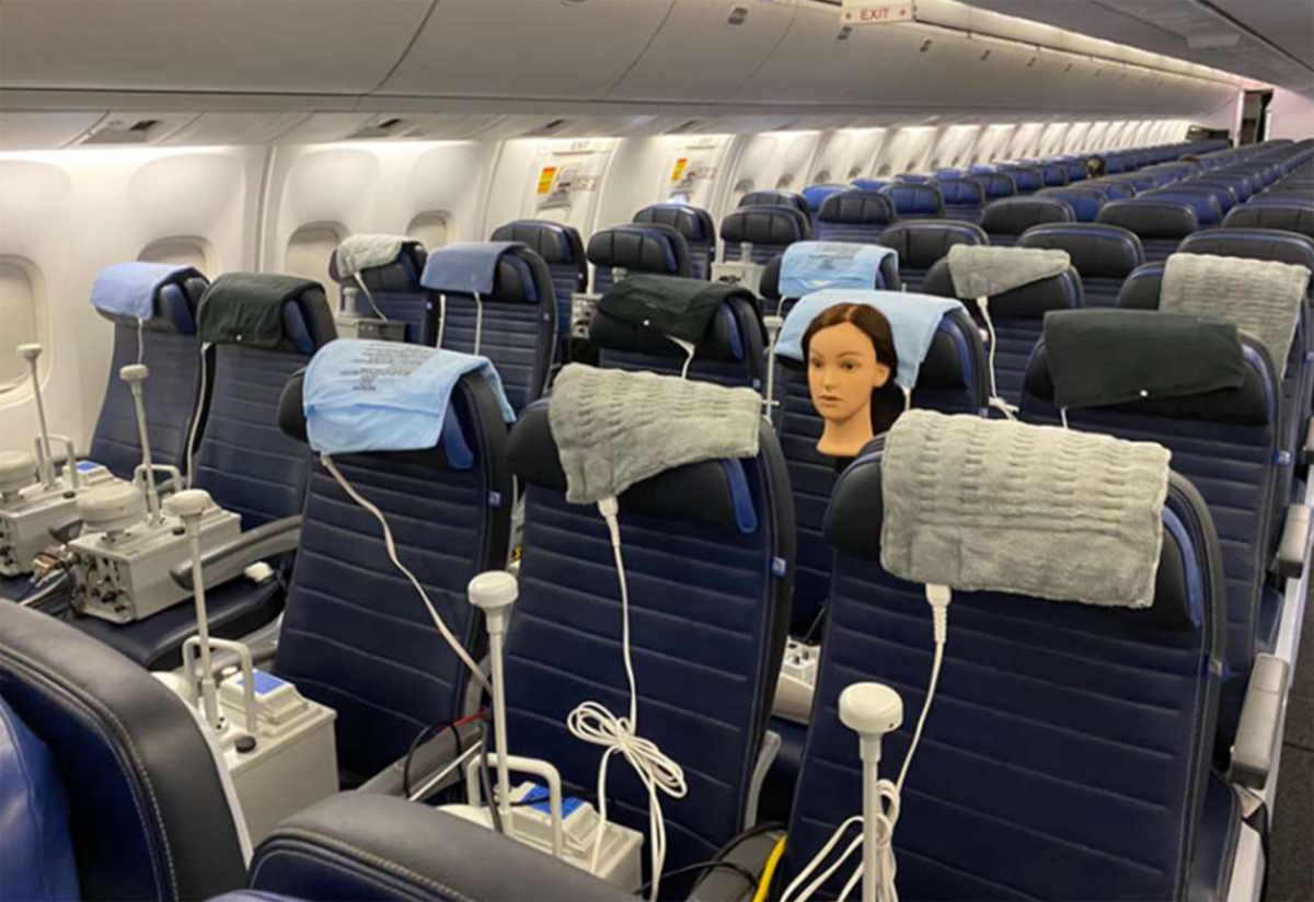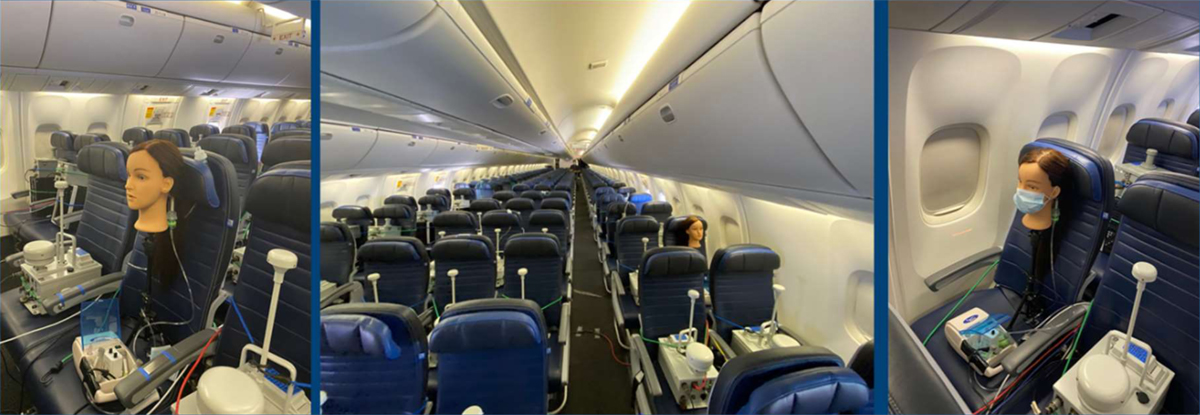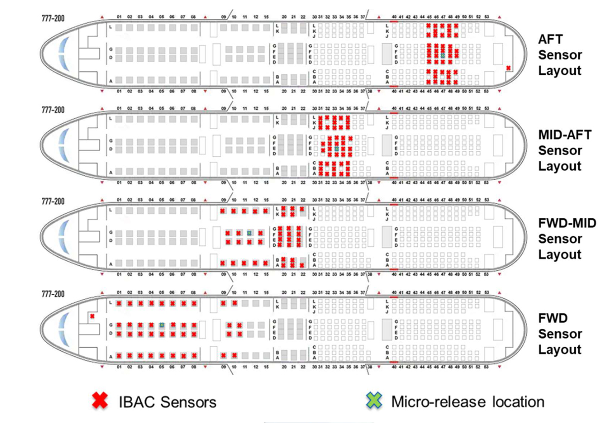 Hengitystä simuloitiin vapauttamalla matkustamoon kahden sekunnin välein fluoresoivia merkkiainehiukkasia. Niiden määrää mitattiin eri puolilla matkustamoa 40 IBAC-sensorilla (Instantaneous Biological Analyzer and Collector), jotka havaitsivat aerosolipitoisuudet matkustajien hengitysvyöhykkeellä. Samalla viruspatogeeneja mitattiin myös paljon kosketeltavilta pinnoilta, kuten istuimien käsi-ja selkänojista.