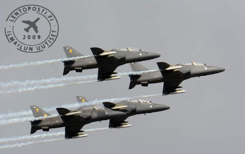 Ilmavoimien puolelta lentonäytöskauden avasi itseoikeutetusti BAE Systems Hawk -suihkuharjoituskoneilla lentävä Midnight Hawks -osastotaitolentoryhmä. Tässä vaiheessa kautta oli havaittavissa vielä pientä epävarmuutta, mutta ryhmän tunnusomainen vinoneliömuodostelma pysyi edelleen tiukasti koossa. Esityksen aikana pilvet roikkuivat sen verran matalalla että ohjelmassa ei ollut pystyliikkeitä.