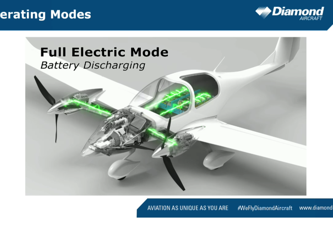 Se nousee ilmaan kahden sähkömoottorin canard-siipeen sijoitetun sähkömoottorin voimalla. Ne antavat 30 minuutin toiminta-ajan. Koneessa on AE300 -dieselmoottori, joka nostaa toiminta-ajan viiteen tuntiin. Koneeseen on asennettu kaksi sähkömoottoria, kaksi akkua (kapasiteetti 28 kWh), kaksi inverteriä ja generaattori. Koekoneessa on ylitehoinen dieselmoottori, joka voi lennon aikana jopa ladata koneen akkuja.