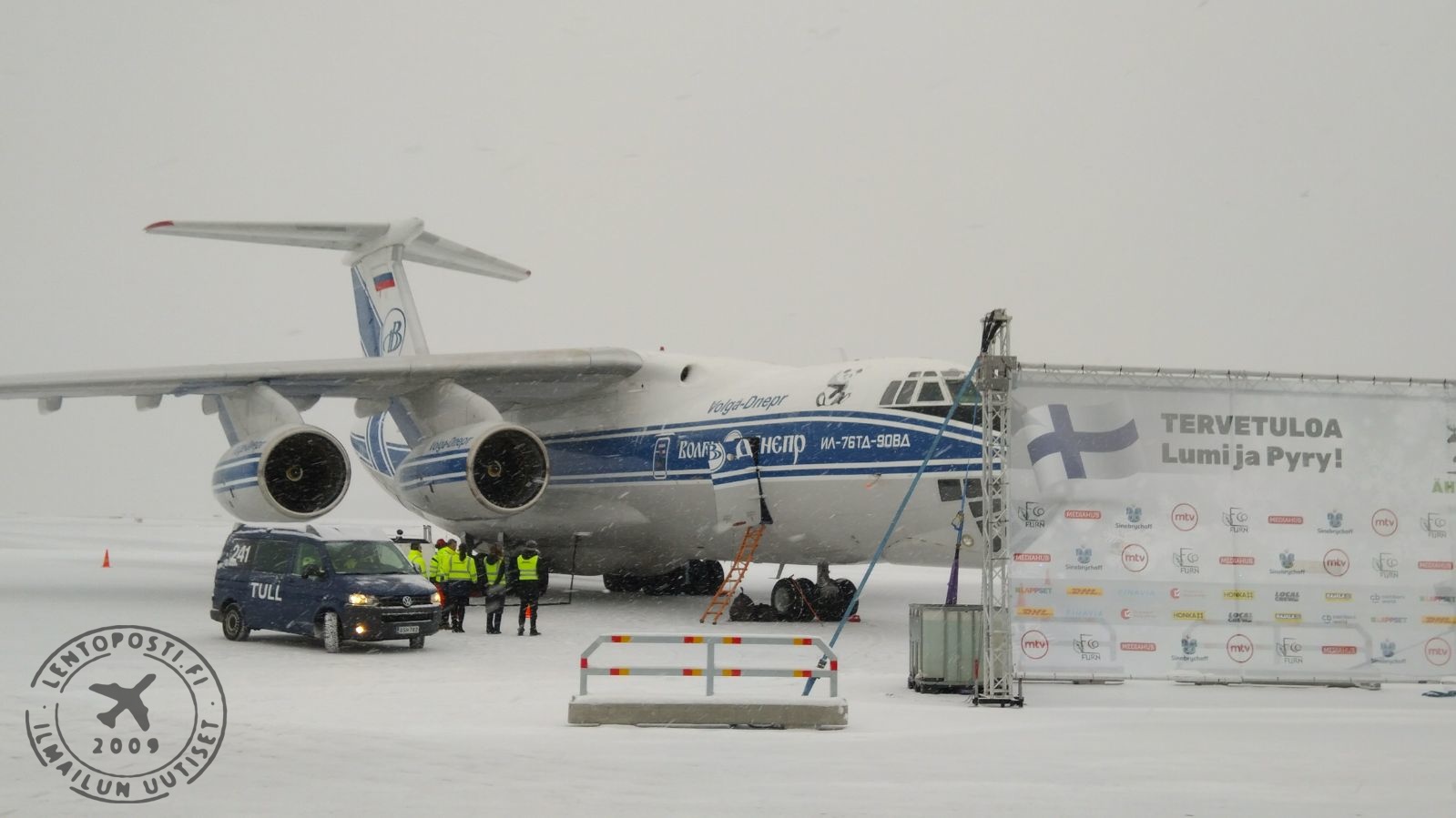 Ensi etappi oli Chengdun lentokentälle, josta ne lensivät ilman välilaskua noin 6500 km Helsinki-Vantaalle Volga-Dnepr Airlinesin Iljushin Il-76 -rahtikoneella. Matkaeväänä pandoilla oli 120 kg bambua. "Lento sujui rauhallisesti, sillä tuttujen ihmisten läsnäolo rauhoittaa pandoja. Matkan aikana pandat saivat tietysti myös ruokaa ja juomaa. Eväinä oli niiden herkkuja eli bambua, porkkanaa, omenaa ja pandakakkuja", kertoi Ähtäri Zoon pandahoitaja Anna Palmroth.