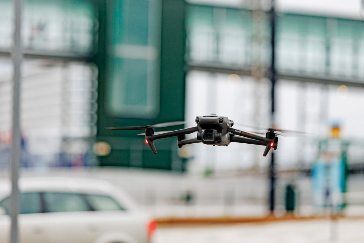 Dronikokeilu käynnistyi 16. syyskuuta Jätkäsaaressa sijaitsevan Länsisataman laivaterminaalin alueen liikenteen ruuhkautumisen ratkaisemiseksi. Lennot toteuttaa suomalainen Flyby Guys. Operaattorin mukaan alueella on havaittu GPS-häirintää tiistaina 17. syyskuuta. Lentotoiminta pääsee jatkumaan vasta, kun tilanne parantuu.