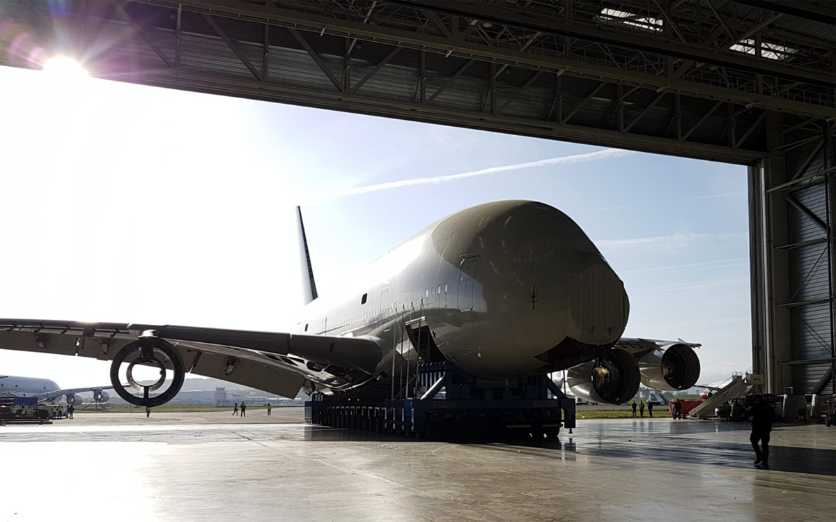 Ensimmäisen kaksikantisen jättiläiskoneen purkutyö käynnistyi Tarmac Aerosavella vuoden 2019 alussa yhdessä koneet omistavan saksalaisen Dr Peters -konsernin sekä elinkaari- ja varaosapalveluita tarjoavan amerikkalaisen VAS Aero Servicen kanssa. "Olemme erittäin ylpeitä tästä teollisesta menestyksestä, jotka saavutettiin maailman suurimmalla käytössä olevalla lentokoneella. Innovointi ja muuntautumiskyky ajavat Tarmac Aerosavea tavoitteisiin lentoliikennemarkkinoilla ennakoiden myös asiakkaiden tarpeita sekä seuraten ympäristöstandardien kehitystä", sanoi Tarmac Aerosaven toimitusjohtaja Patrick Lecer.